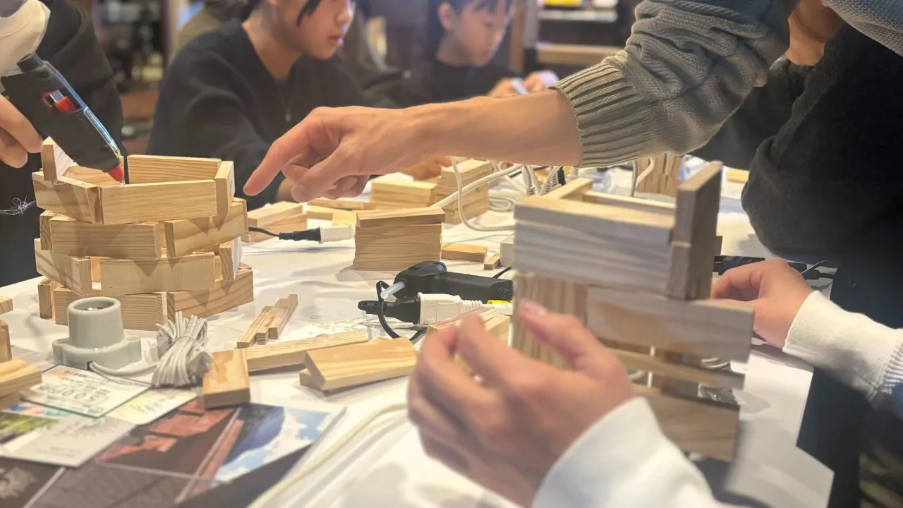 また、弊社からは「KU-SHI」と「かまぼこつみき」で遊べる“つみき広場”を出展し、かまぼこつみきを使った「テーブルランプ制作ワークショップ」も開催しました!小さなお子さまから大人の方まで多くの方にご参加いただき、個性輝く各々のランプが生まれました。皆さまが楽しそうに談笑しながら手を動かす姿に、私たちも嬉しくなりました。