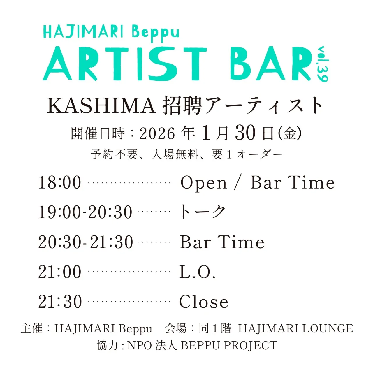HAJIMARI Beppu ARTIST BAR vol.39 KASHIMA 招聘アーティスト