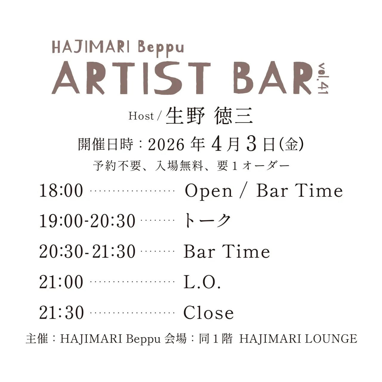 HAJIMARI Beppu ARTIST BAR vol.41 生野 徳三
