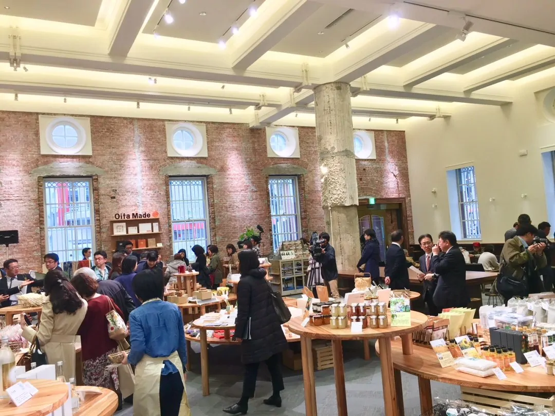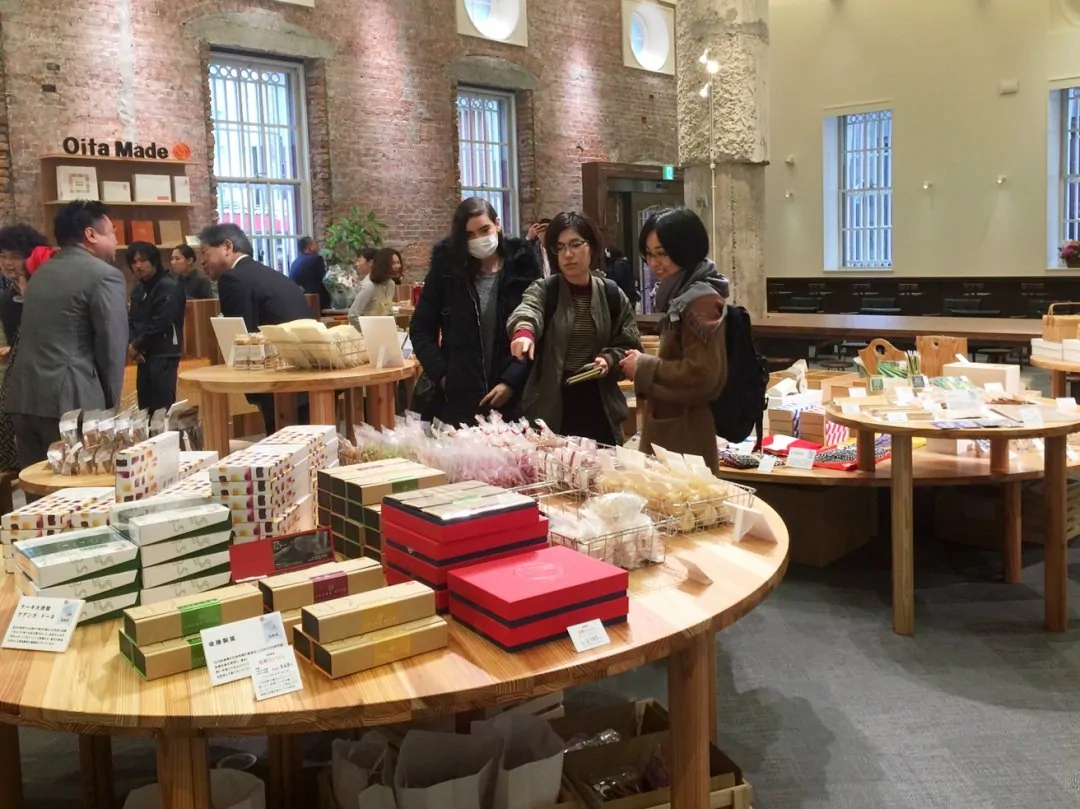 明治43年に着工し、大正2年に竣工したという赤レンガ館。今回初めて内部空間に現れた壁面の赤レンガ造の壁面には重厚な存在感があり、戦後の復興時に作られたコンクリートの柱は意外にもモダンな雰囲気を醸していました。こだわりの詰まった日田杉のちゃぶ台にはOitamadeの商品がレイアウトされ、来場された皆様は楽しそうに買い物をしておられました。明治、大正、昭和、平成に亘る時の積み重ねを感じる歴史的な空間の中で、大分県産のプロダクトとタウトナコーヒーの美味しいコーヒーを楽しめます。クラフトビールも飲めるらしいですよ!是非お気軽に足を運んでみてください。(水曜日が定休日だそうです)