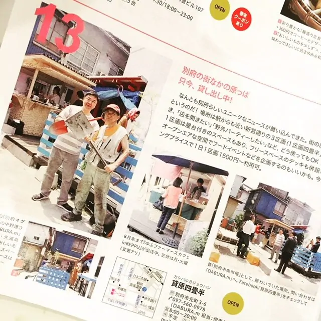 別府市元町の空き地を利用して「貸はらっぱ」を実施しています。その名も「貸原四畳半」(カシバルヨジョウハン)!!