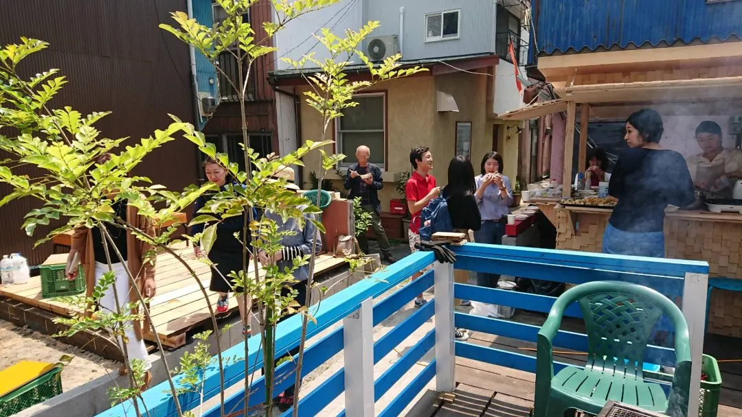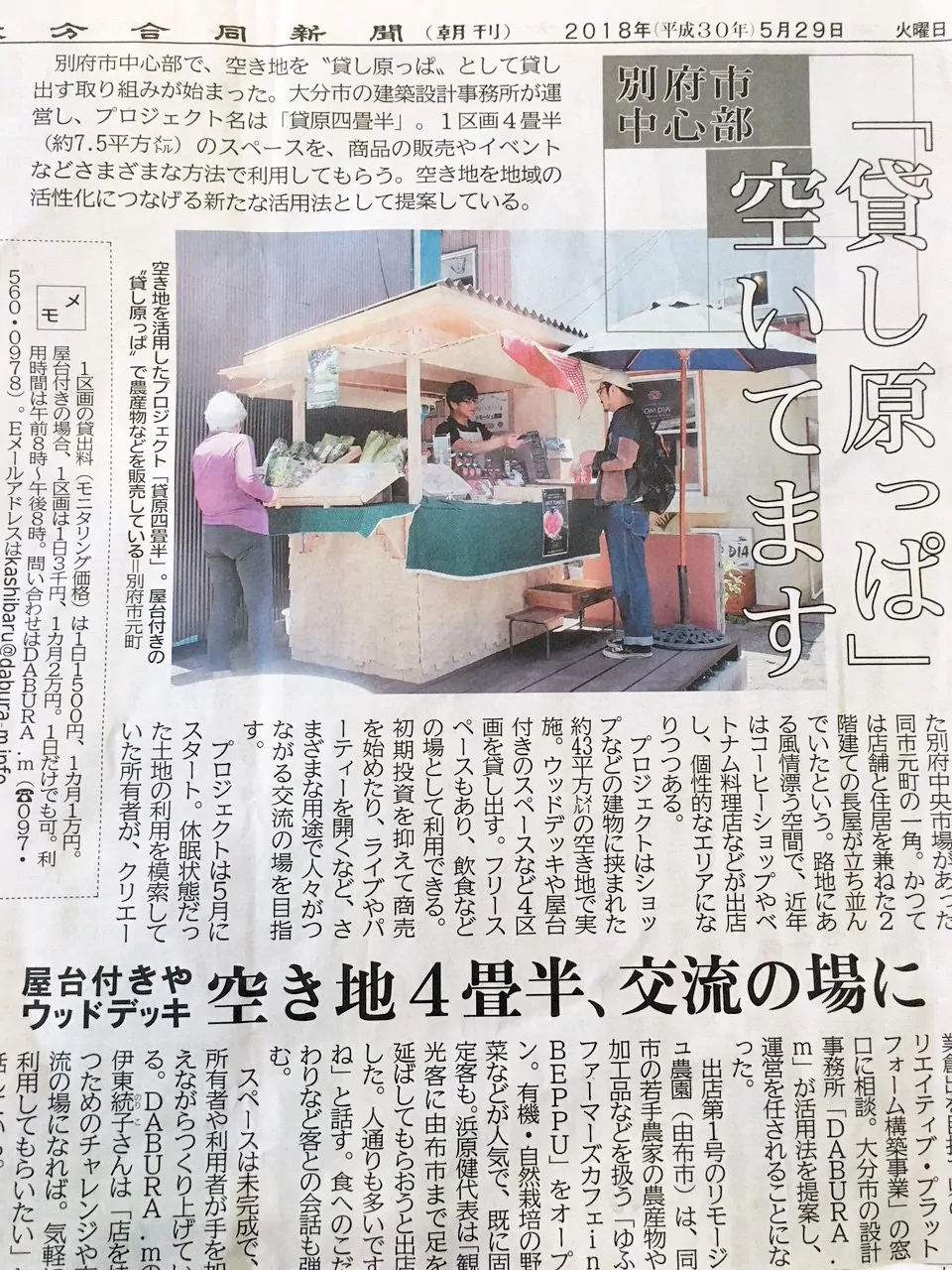 先日5/1(火)は、別府市元町で「貸原四畳半」のオープニングパーティーを開催しました。平日にもかかわらず、たくさんのお客様が貸はらっぱに立ち寄って祝福の言葉をかけてくださいました。貸はらっぱに興味を持ってくださった方、取材に来てくださった記者の方々、あっという間にウッドデッキを完成させてくださった強力な助っ人の方々、大工さん、暑い中本当にありがとうございました。