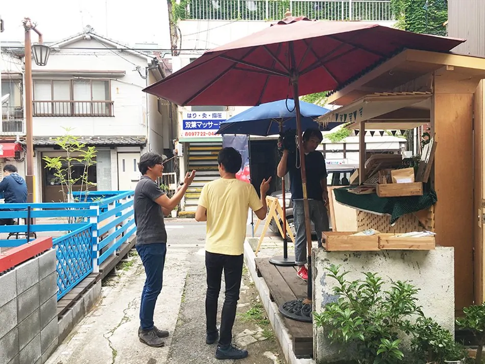 貸はらっぱとはどんなものか?貸原四畳半がまちにどのような影響を与える可能性を持っているか。借りる人にどんな風に使って欲しいかなど、貸原四畳半について幾つかのインタビューに応えるお仕事でした。原稿も書いて練習をしていたにもかかわらず、カメラの前に立つと緊張して伝えたいことをほとんど喋れませんでしたが、アナウンサーの田邊さんと、制作部担当部長さんのサポートでなんとか無事に終えることが出来ました。