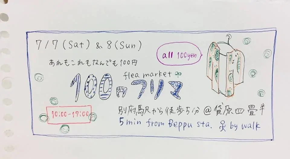 また、今週末の7/7(土)7/8(日)は同じくAPUの学生さんが「100円フリマ」を開催予定です。