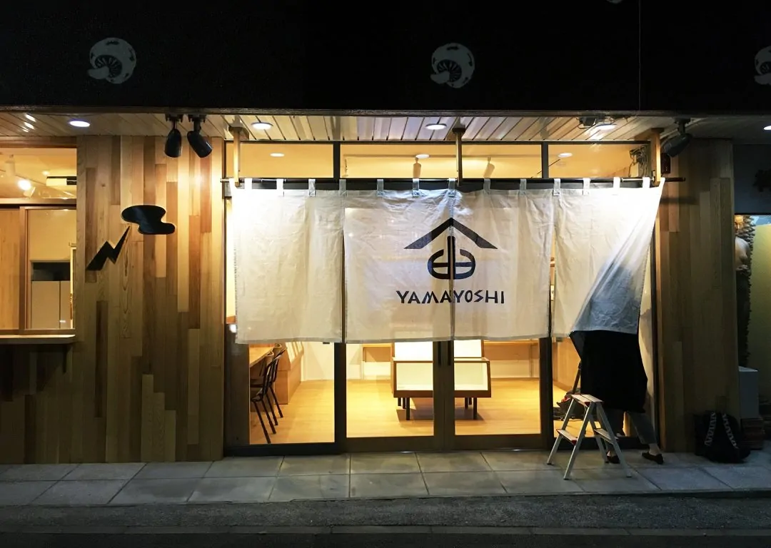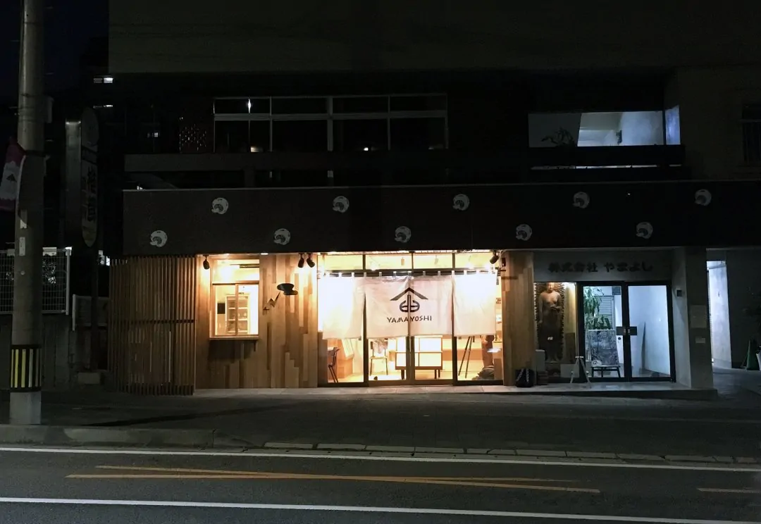 別府駅の西口から青山通りを山の手方面へ4分ほど歩いた通り沿いにある、大分産乾しいたけ専門店「やまよし」さんのリノベーションを担当しました。