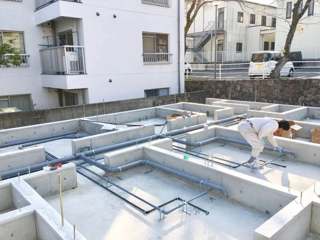 本日は別府の歯科医院の現場に伺いました。一見迷路のように仕切られた基礎が印象的で、歯科医院ならではの色んな種類の配管が名職人さんによって設置されているところでした。普段、事務所内での作業が多いので気づかないこともありますが、一つの建物が形になるまでには、色々な人の努力と無数の工程があるんだなと、現場を見て感じることができました。これから徐々に完成に向けて進んで行くのがより楽しみになりました。