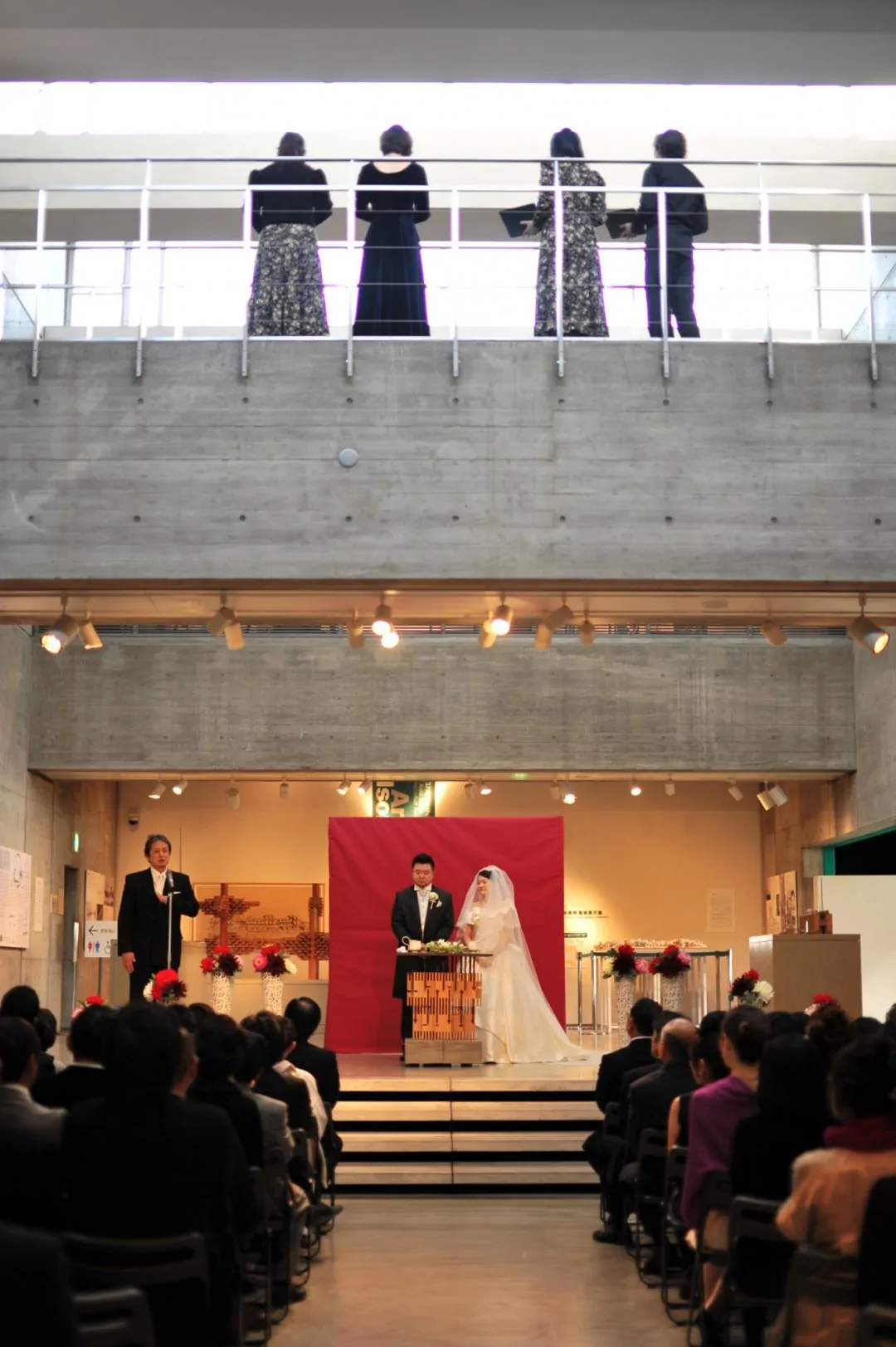 磯崎新氏設計によるART PLAZAの60’sホールにて、結婚式を行った。磯崎氏は60’sホールをカテドラルとして設計したのではないかと思っている。その空間を、実際にカテドラルに見立てて利用してみることで、この空間が持つ潜在的な力を引き出すことを試みた。