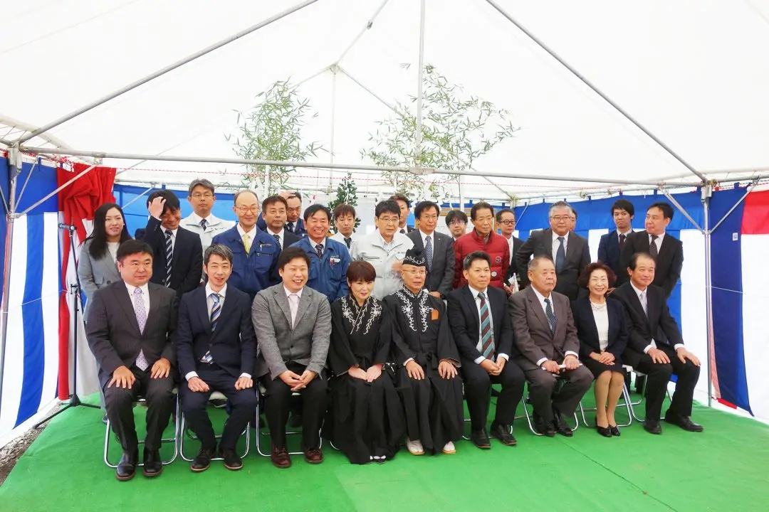 別府湾が一望できる素晴らしい景色の中、たくさんの関係者が一堂に会し、改めてとても大きなプロジェクトなのだなと実感しました。工事の無事や安全を祈り、メンバー一同約1年間の監理に向けて、より気持ちを引き締めてこれからの日々を迎えようと決意した1日となりました。