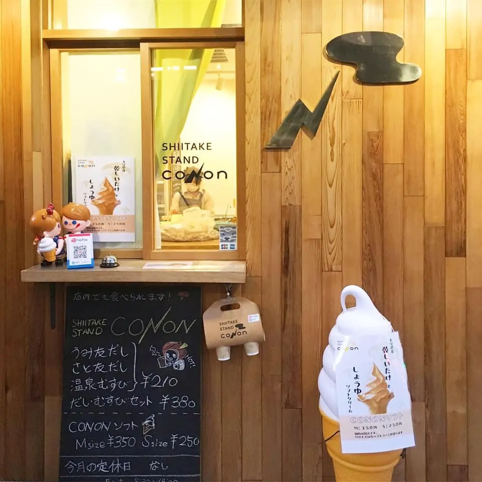 乾しいたけとお醤油の味がするソフトクリームということで、どんな味なんだろうと興味津々でしたが、塩キャラメルのようなコクを感じる濃厚な味でとっても美味しいソフトクリームでした!注文したソフトクリームに振りかけて違う味を楽しめる「しいたけ塩」や、冬の季節、鍋などに大活躍のしいたけがぎゅっと詰まった出汁パックのなど、美味しくて体に優しい商品を沢山販売しているので、是非遊びに行ってみてください。