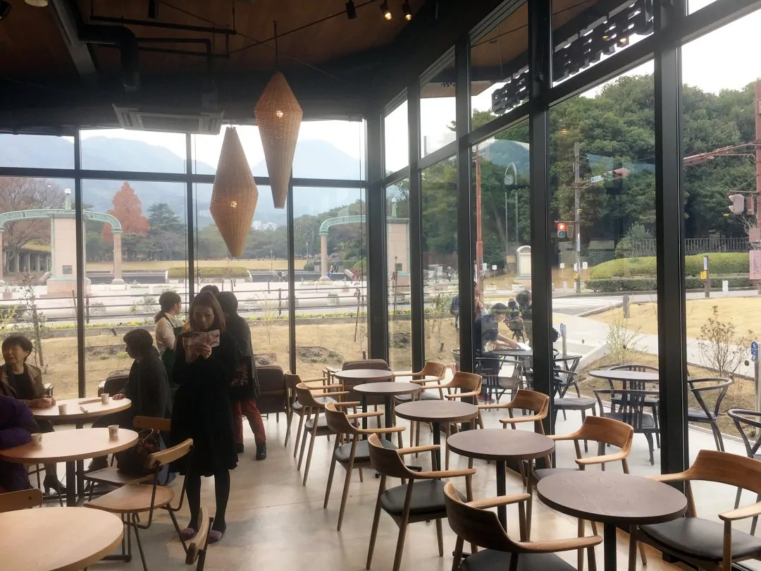 本日は、別府公園でのオープン前イベントで可動建築での空間作りをご協力させていただいたご縁で、スターバックスコーヒー別府公園店のプレオープン内覧のご招待に与り、伺ってまいりました。店内は大分出身や在住の作家による絵画や彫刻、竹の照明なども展示されていて、公園側の風景も眺めることができ、開放的な空間でした。会場では別府界隈の各界の方々ともお会いすることができ、華やかに賑わう空間を楽しませていただきました。別府公園店では、大分で唯一飲めるという「ナイトロコールドブリューコーヒー」というコーヒーもあるそうです。これからはコーヒーを買って、別府公園を散歩する人が増えるのだろうと思いました。「スターバックス別府公園店」は明日OPENするとのことです。是非行ってみてください。