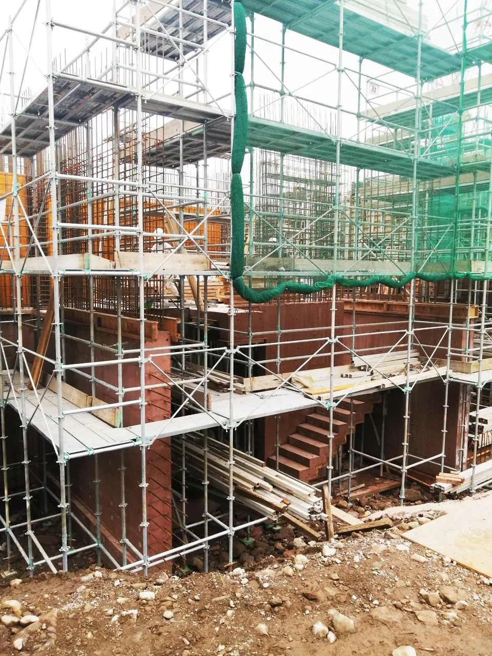 数ヶ月前まではテラス御堂原のみしか見えなかったのですが、今や仮設足場に覆われた不思議な塊が木々の合間から飛び出しています。