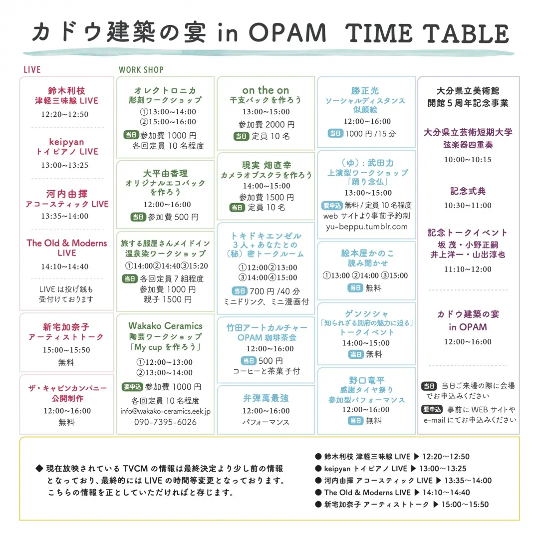 来る10月25日、大分県立美術館開館5周年記念事業が開催されるにあたり、12時〜16時に、OPAM前197号線上にて「カドウ建築の宴inOPAM」が開催されます。