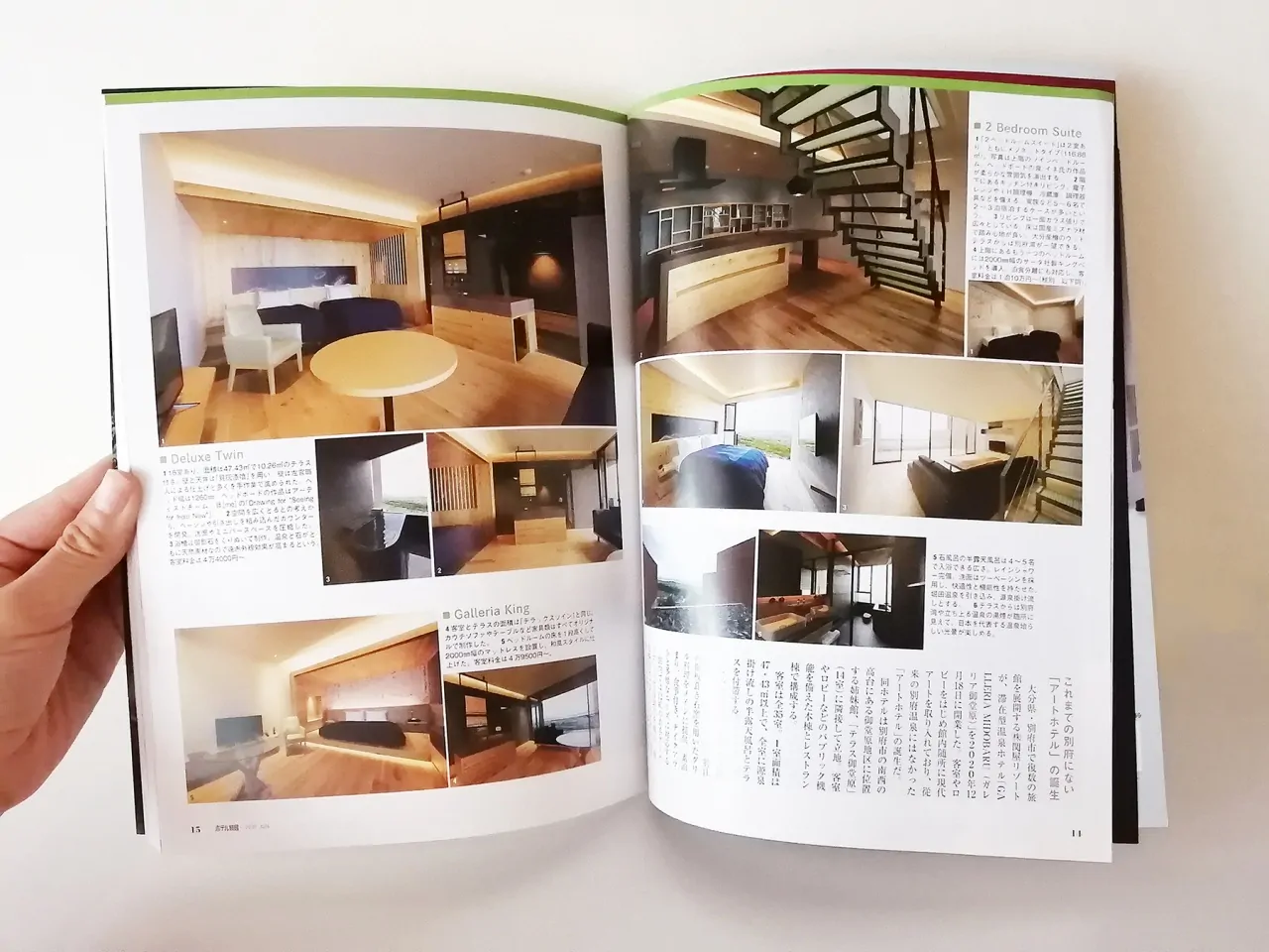 「新たな滞在を提案する『リゾートホテル・旅館』」という特集の中で取り上げていただき、ロビー空間のお写真が表紙となっております。記者さんと写真家さんも現地にいらっしゃっての撮り下ろしだったようです。