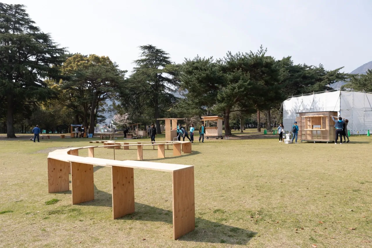 第一回目の「カドウ建築の宴 in 別府公園」は、別府市さんにご理解いただき、公民連携 の第一歩として別府公園にて2019年4月に実施いたしました。