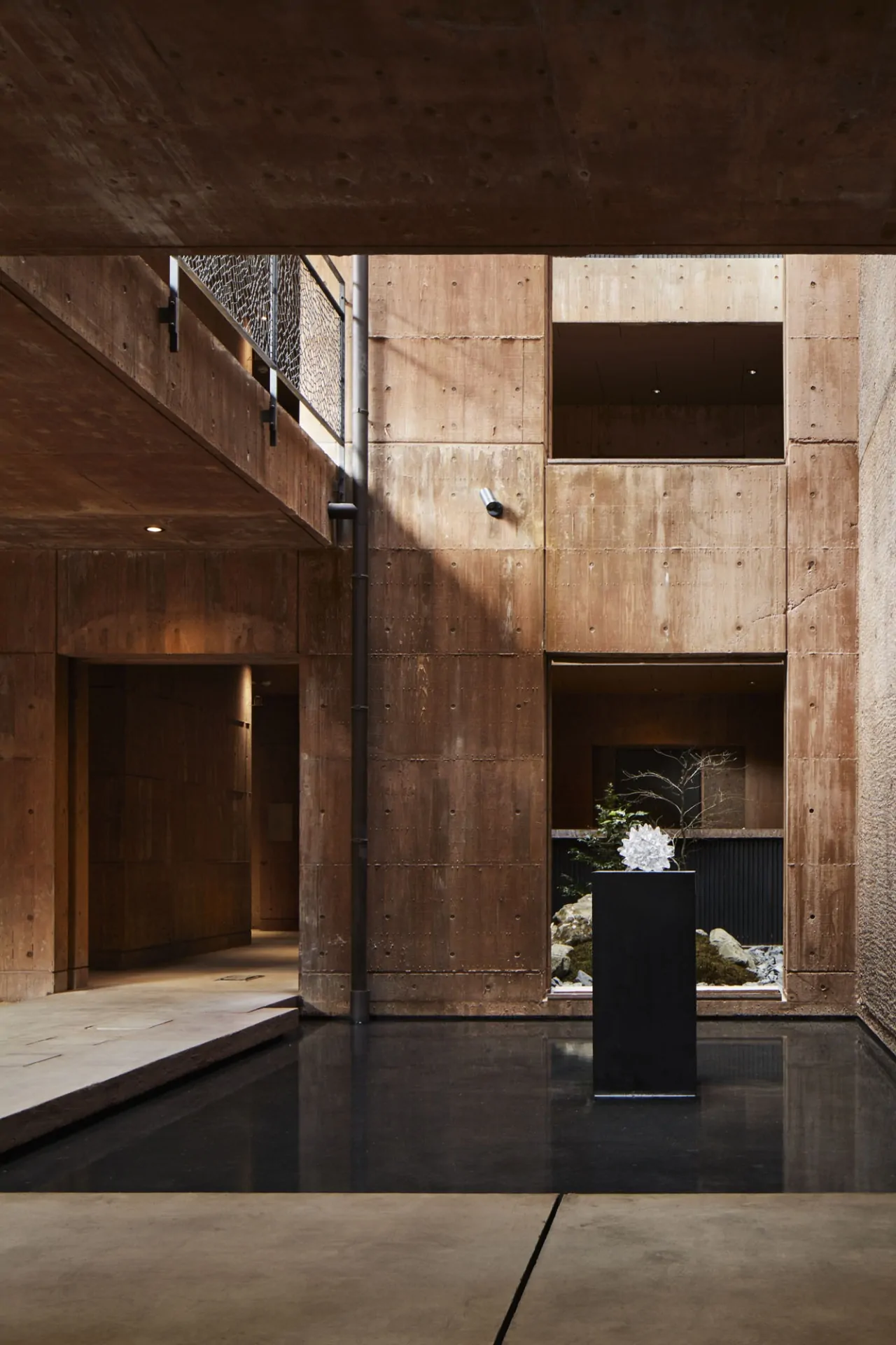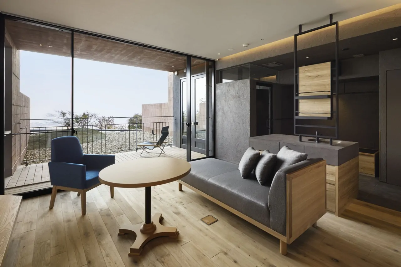 「赤みを帯びたマッシブなコンクリート壁が立ち並ぶ、これは別府西部のホテルの計画。その色合いや荒々しい肌理は土地の山肌と近い。時にキャンティレバー状に迫り出した形態は、特に建築の機能的要求から導き出されたものではなく、周囲の自然地形と同様に、人の意図に与しない、造形物としての自律した存在原理に従っているかのようだ。移ろいやすい社会の要求を超えた、土地のような永続的なその佇まいが、ここにでしか得られないサイトスペシフィックな価値をホテルに保証している。また、ホテル内には土地/サイトを題材とした無数のアートが配されていて、土地/サイトとそれを解釈しつつ生きる人間存在という構図が、アートとまさにサイトのようなホテルの関係によって明示されている。土地とそれを解釈することで見出された造形物としての建築と、その圧倒的な存在性。そのような根源的な建築の力を示す近年稀なアプローチであり、高く評価した。」