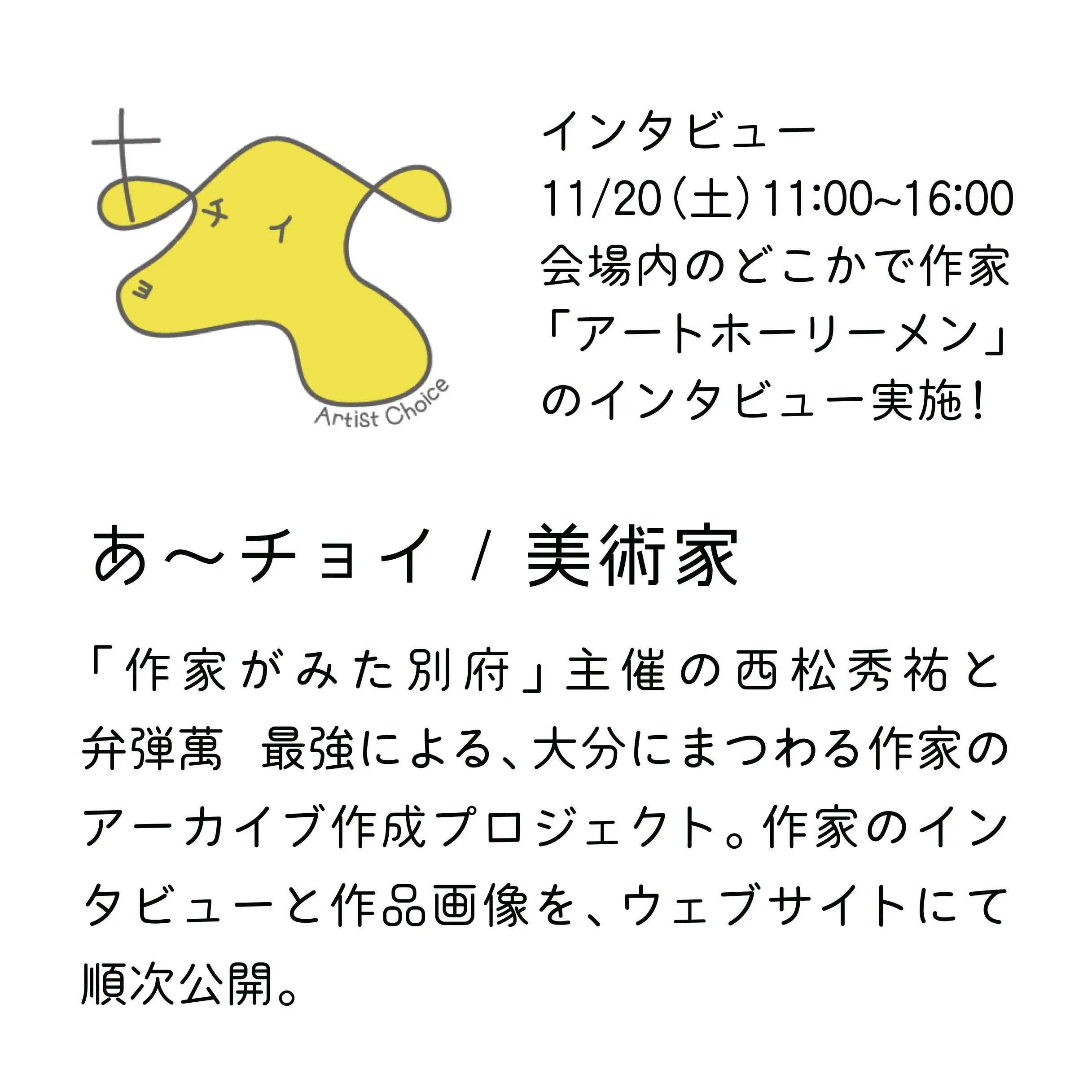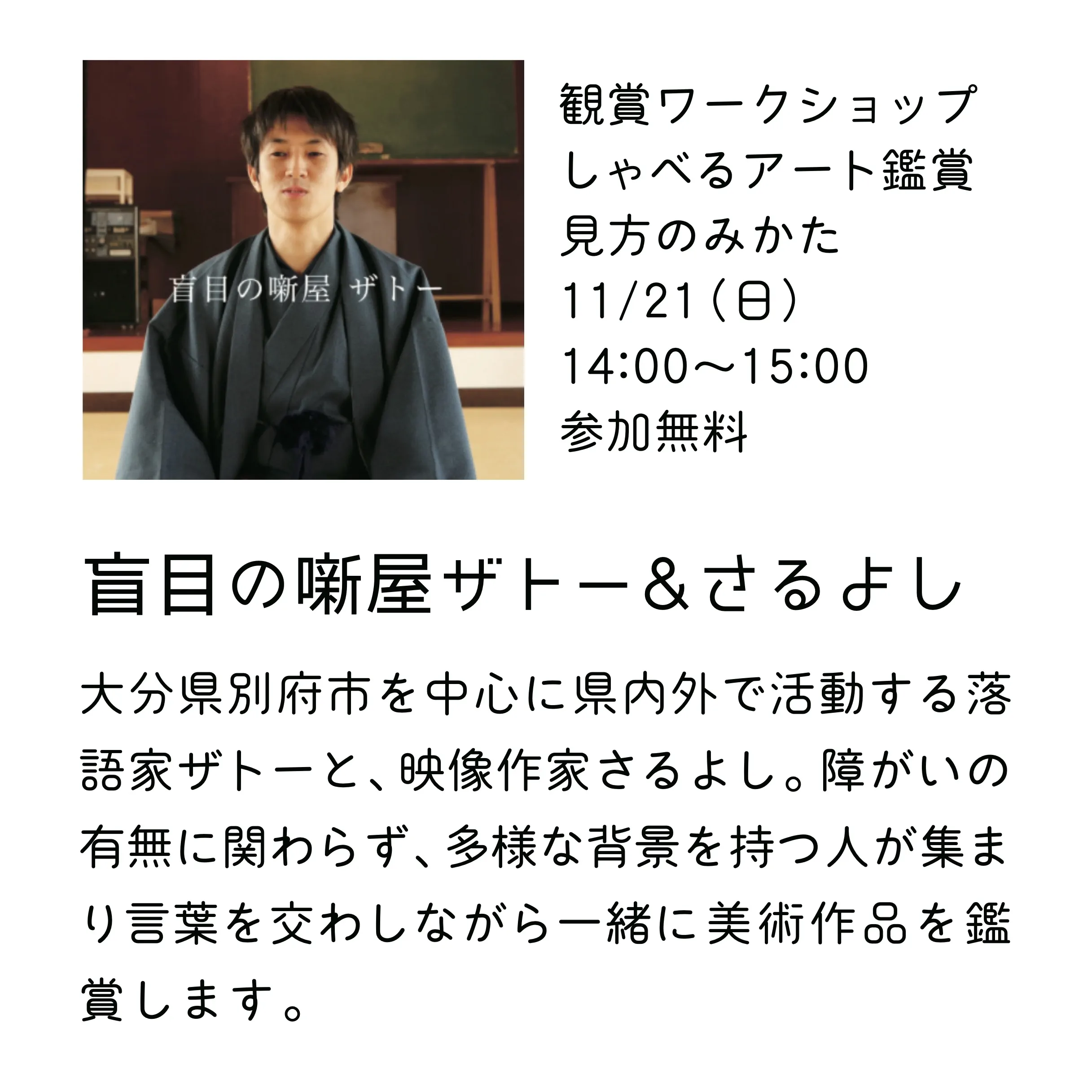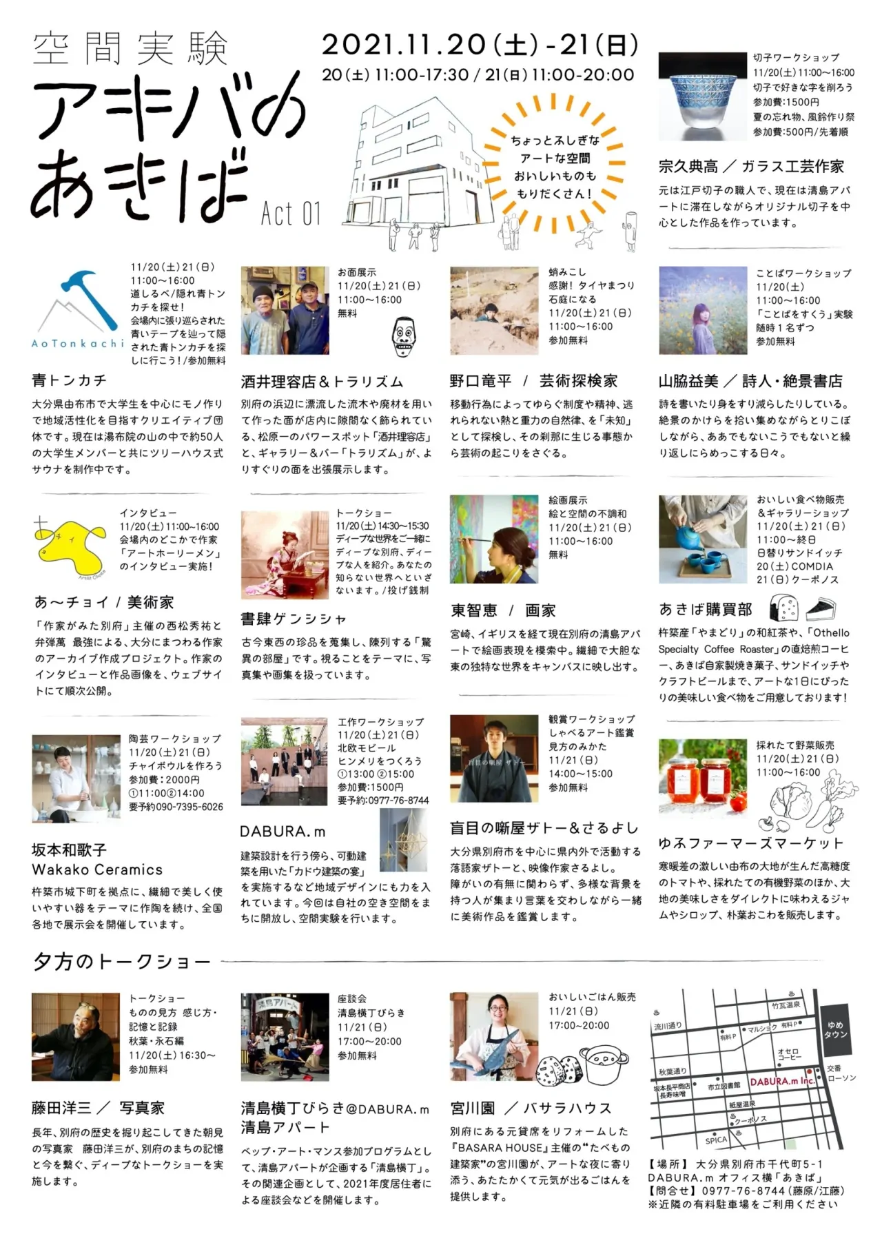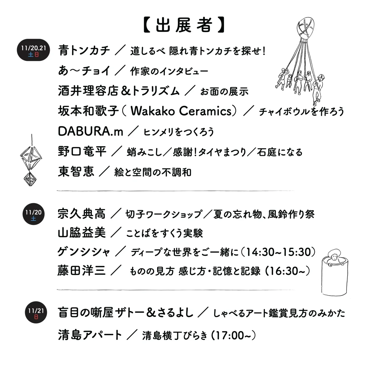 青トンカチ/あ~チョイ/坂本和歌子/酒井理容店&トラリズム/書肆ゲンシシャ/DABURA.m /野口竜平/盲目の噺屋ザトー&さるよし/東智恵/宗久典高/山脇益美
