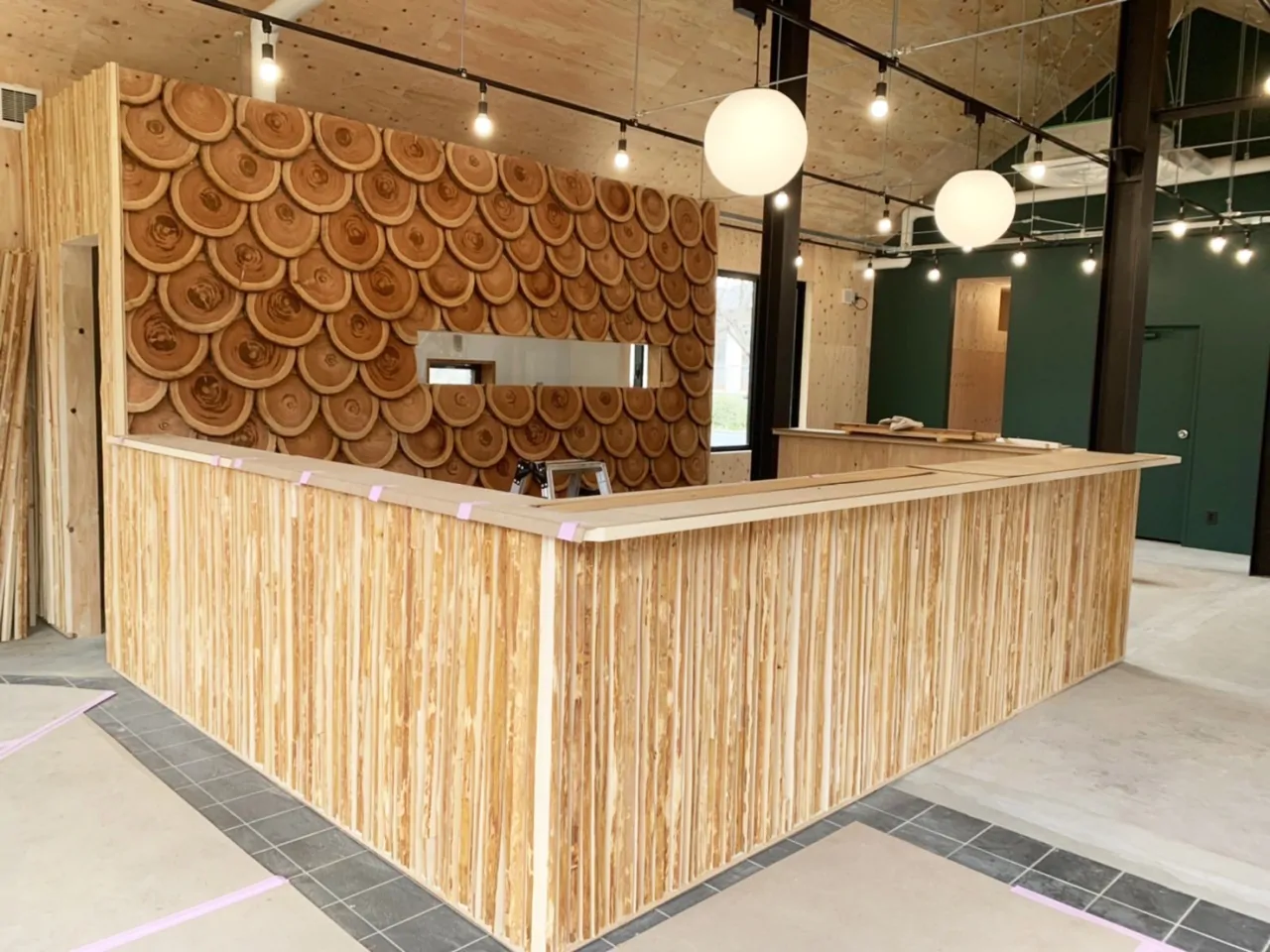 昨今注目が高まっている「ワーケーション」などに活用してもらえるように、企業等を誘致する公民連携のサテライトオフィスとして整備し、湯布院の滞在者が利用できるコワーキングスペースにもなる事が想定されています。現在5月のOPENに向け工事を進めております。木の温かさや木材のリズムを感じられる空間になりそうです。