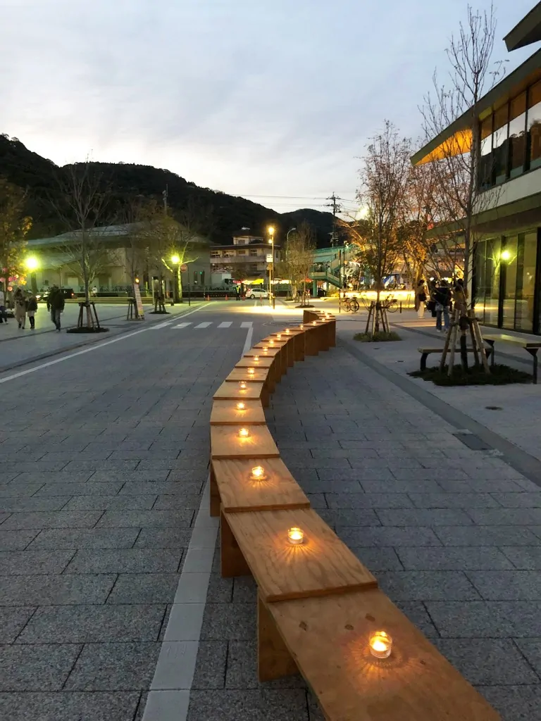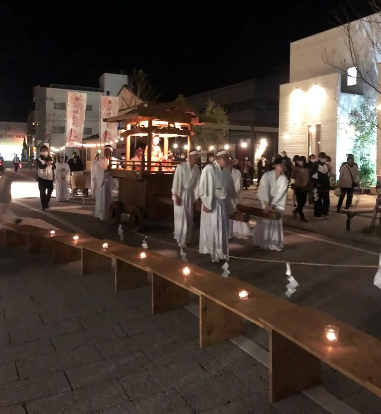 さいき桜まつりに合わせて市中心部を練り歩くイベント「佐伯半弁財天様まいり 菊姫行列」も行われ、キャンドルを並べた「モクカイ」も、神々しい雰囲気に一役買っておりました。