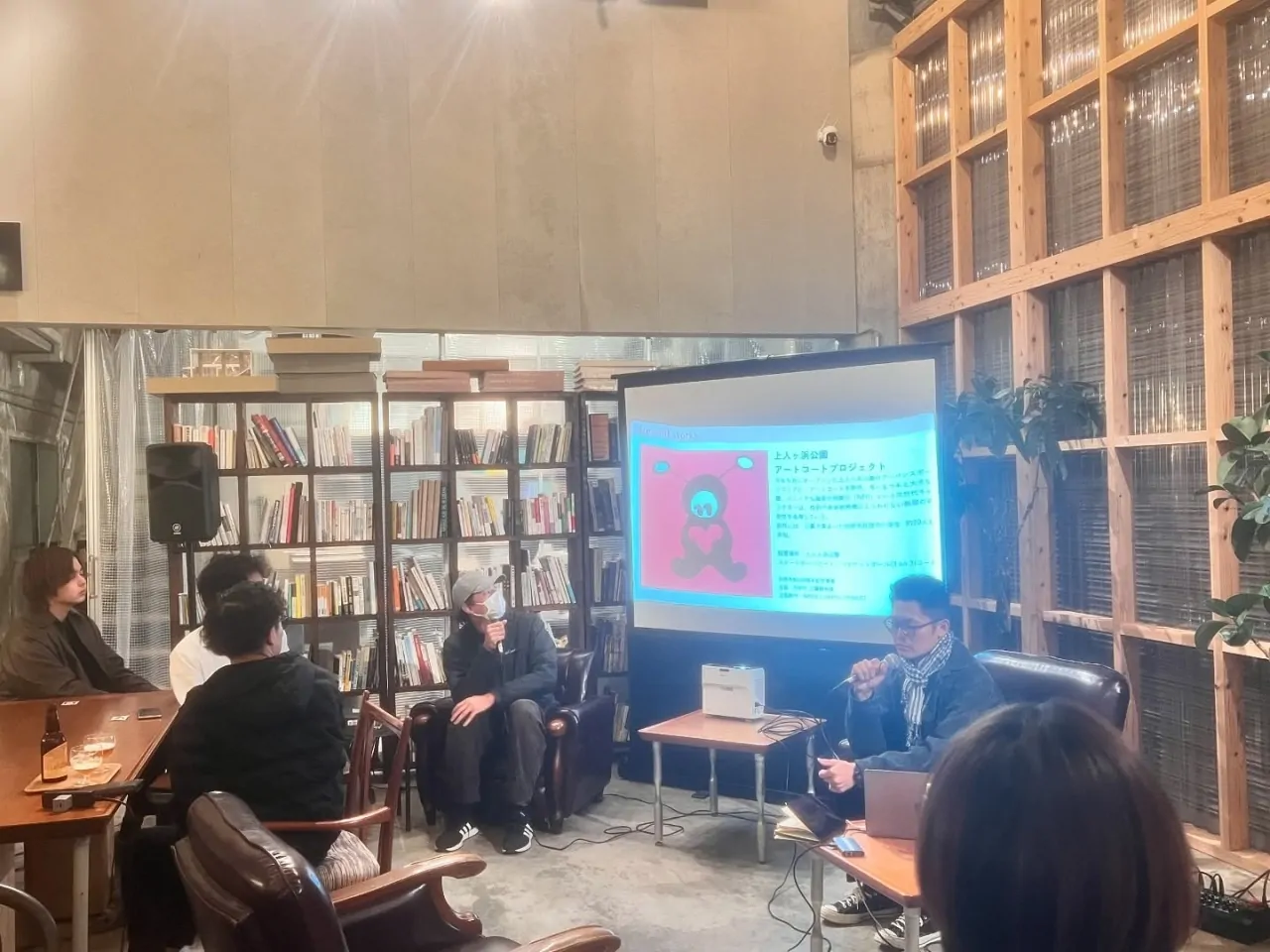 11月22日(金)に、HAJIMARI Beppu ARTIST BARが開催されました。ホストに画家・イラストレーターのSIMONさんをお迎えしました。SIMONさんは別府市のご出身、先日開催された別府市制100周年記念事業「上人ヶ浜公園アートコートプロジェクト」では招聘アーティストとして参加されています。子どもたちと一緒にワークショップを行い、大きな作品を完成させたことや、最近参加された香港でのイベントのお話もしてくださいました。地元での作品制作はSIMONさんにとっても大切な出来事で、子供達にもたくさん使ってほしい!とおっしゃっていました。SIMONさんのこれからの活動にも大注目です! ありがとうございました。
