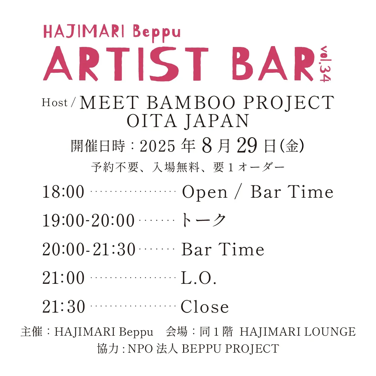 HAJIMARI Beppu ARTIST BAR vol.34 MEET BAMBOO PROJECT OITA JAPAN