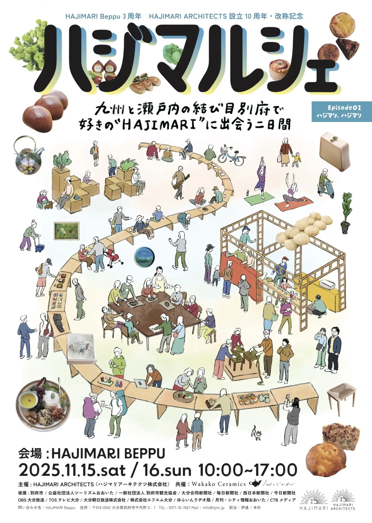大分県別府市の宿+複合文化拠点「HAJIMARI Beppu」にて、2025年11月15日(土)・16日(日)の二日間、マルシェイベント「ハジマルシェ」を開催いたします。