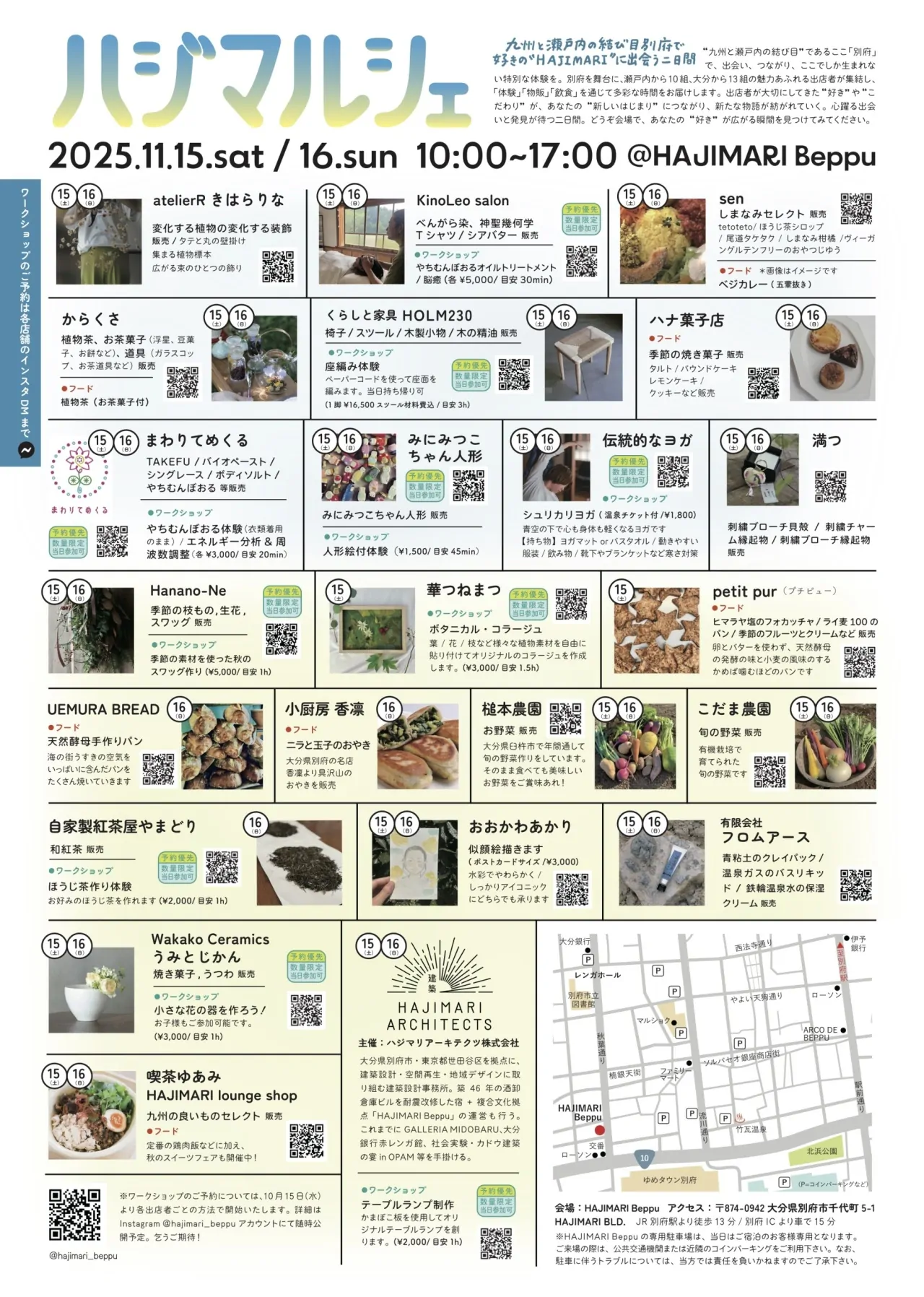 各出店者の詳細やワークショップの予約については、随時HAJIMARI Beppu の公式Instagram(@hajimari_beppu)にて随時公開いたします。