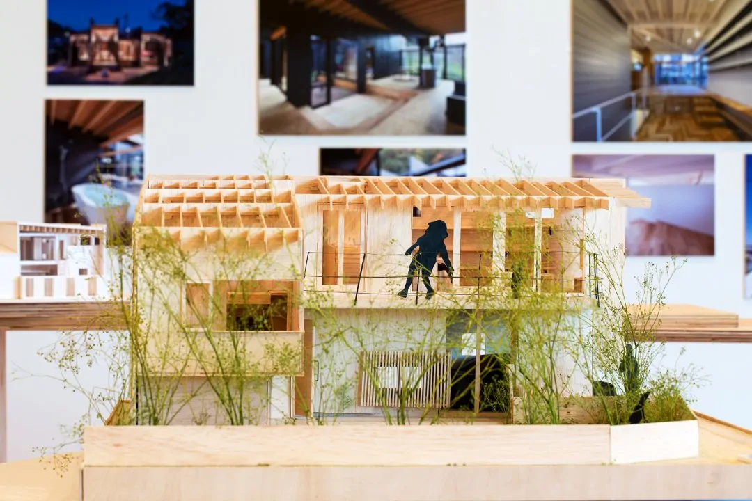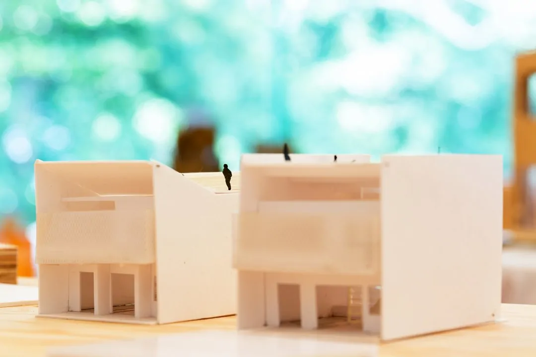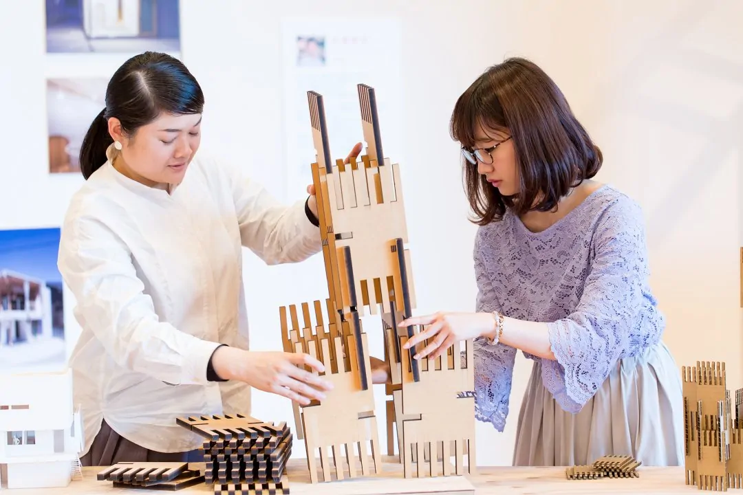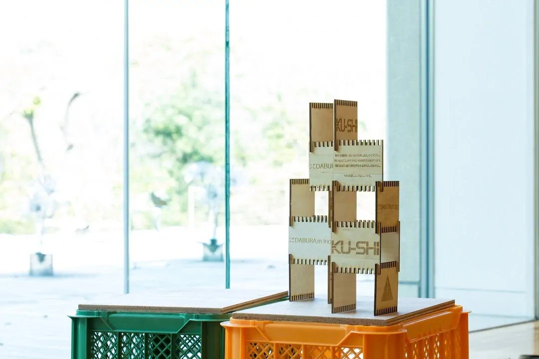 弊社はこれまでの全プロジェクトの建築模型と、「KU-SHI」という展示物を出品しました。こちらは「建物ではない建築」ということで出展致しております。この作品は段ボールのボードをレーザーを使って「櫛状」に切り抜き、パーツ同士を噛み合わせられるようにして様々な家具や形状を創作出来るように考えた「万能パーツ」の試みです。今回は「KU-SHI プロトタイプ」(MDF製)とともにFab Lab Oitaさんとのコラボによる段ボールで作った「KU-SHI 2017 T-5」、「KU-SHI 2017 T-8」も展示しております。お手にとっていただいて自由に組めるようなスペースもご用意しておりますので、ぜひ「建物ではない建築」を体験しにいらしてください。