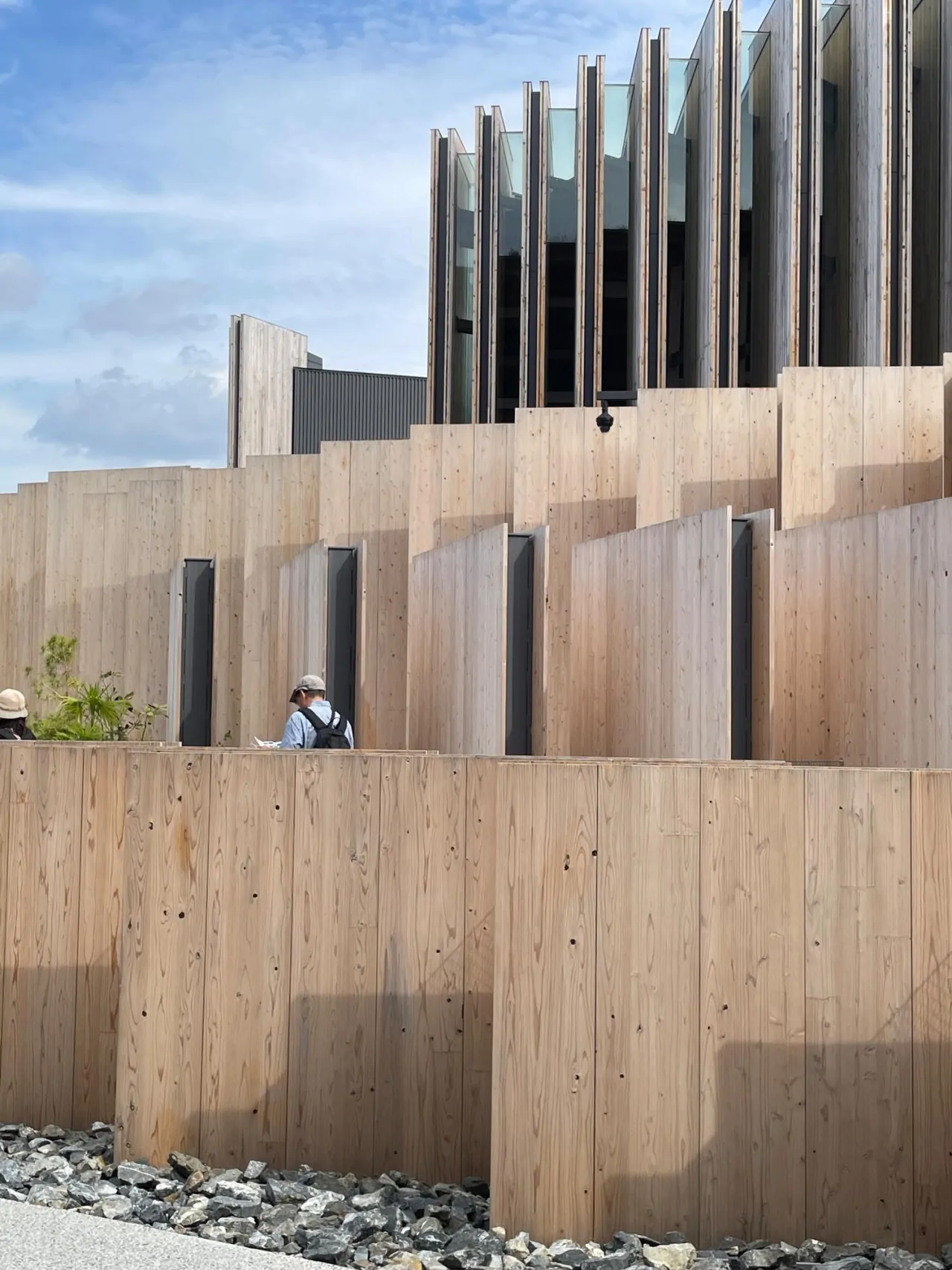 木の構造材CLTが円を描くように重なり、「循環」というテーマが建築そのものに宿っていました。