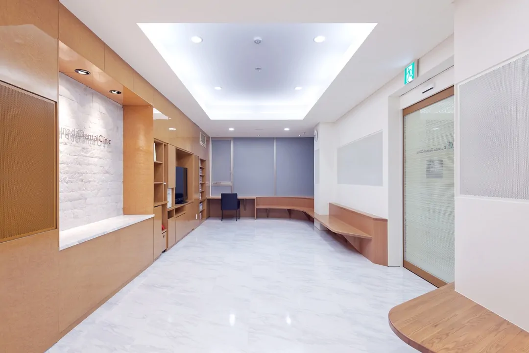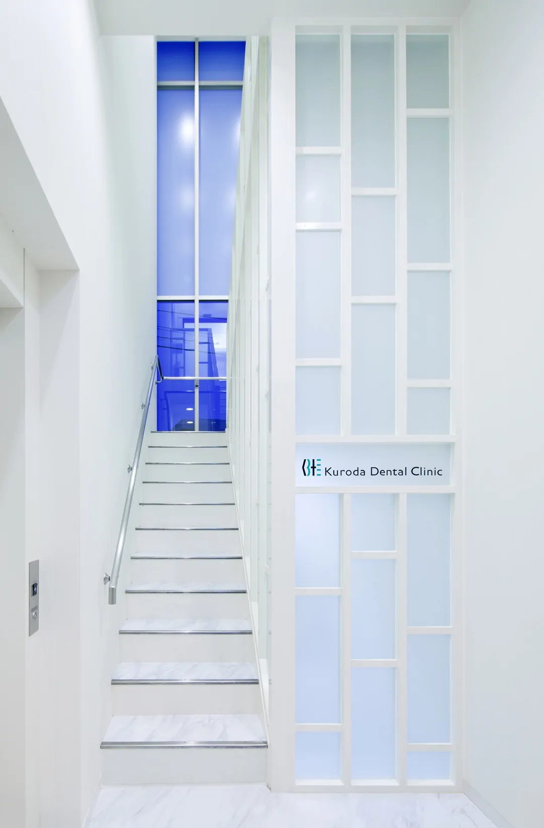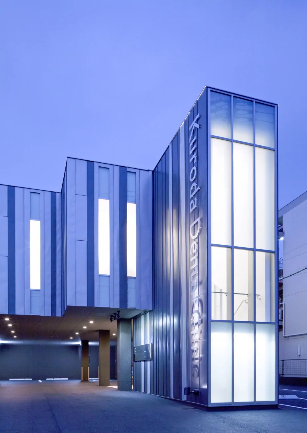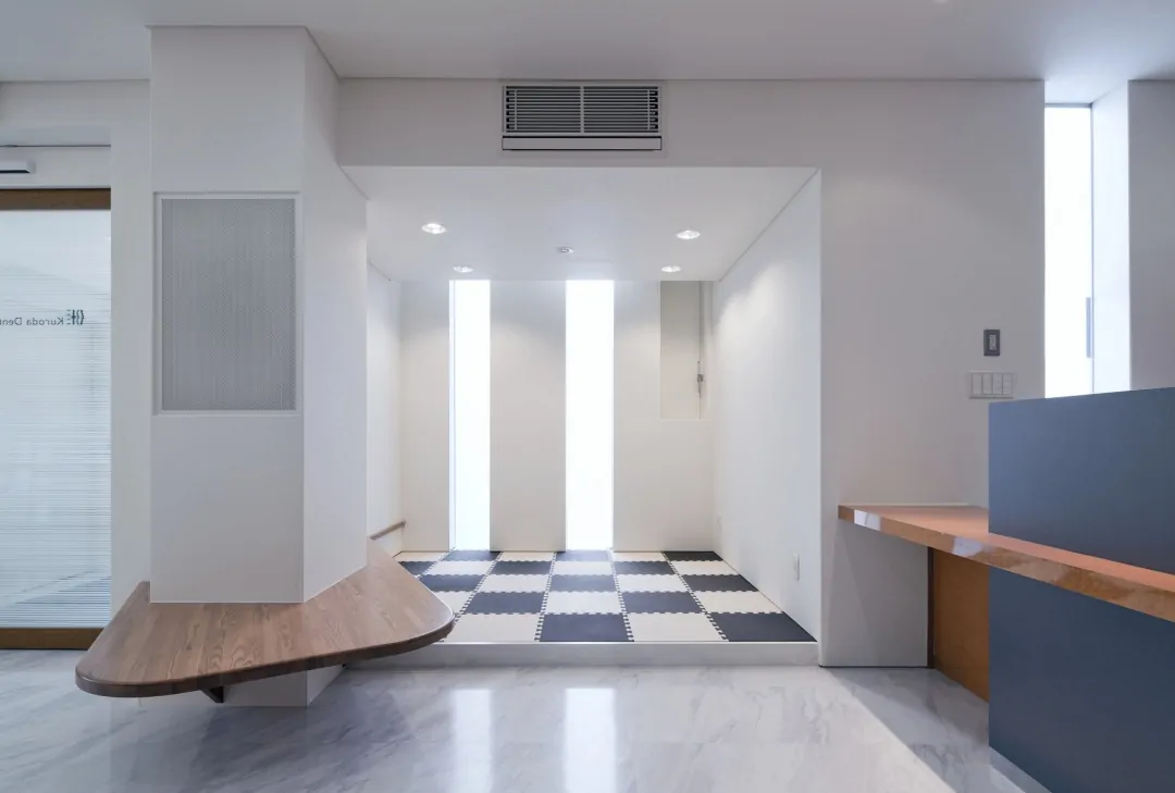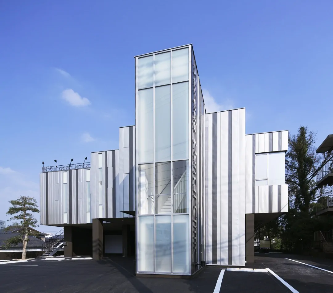 築30年の建物を、新たな歯科クリニックとして再生している。元の建物は、1階が診療台4台の歯科クリニック、2階は100坪程の住宅であった。それを、1階は全て駐車場とし、エレベータと階段を増設して、2階の広い空間を診療台9台(一般診療用4ブース、初診診療ルーム1室、審美歯科ルーム2室、オペ専用ルーム1室、子供遊戯コーナー併設診療ルーム1室)、カウンセリングルーム2室、子供用プレイロット、PCカルテ・画像検索コーナー、消毒コーナー、技工室(技工士3名まで作業可)などからなる総合歯科クリニックとして再生した。再生建築ならではの空間的ゆとりがあればこそ、多機能をローコストで実現できている。外観は、既存建物の特徴を活かしながらもデザインを一新。通りからの視認性が高められ、街の目印的存在となっている。内観は、安らぎと清潔感のある空間に。女性向けパウダールームなども充実させた。工事にあたっては、2階部分を先に完成させ、1階から2階に引っ越した後に1階を解体、駐車場とする「診療しながら再生」を実施。工事中も診療に切れ目を生じさせなかった。