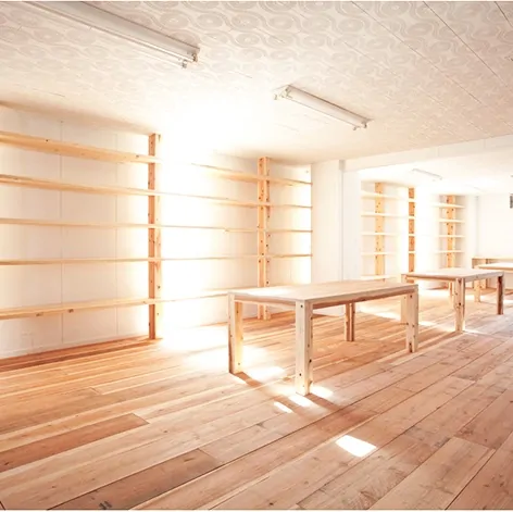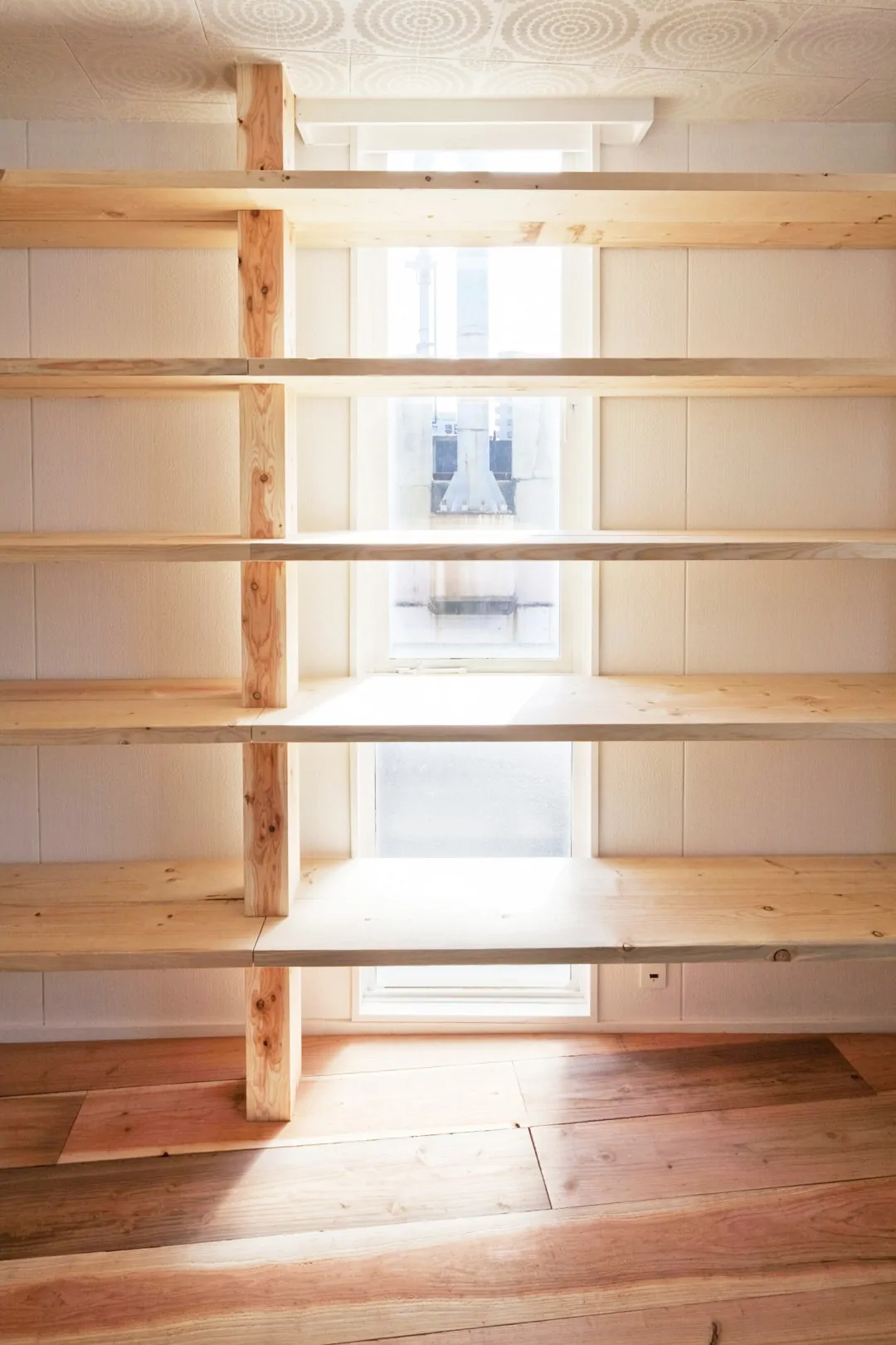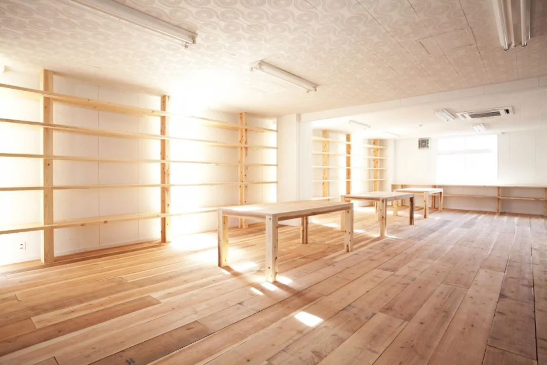 このリノベーションは、一人の大工さんと別府プロジェクトに関連するアーティストや職員によるセルフビルドによって作られた。