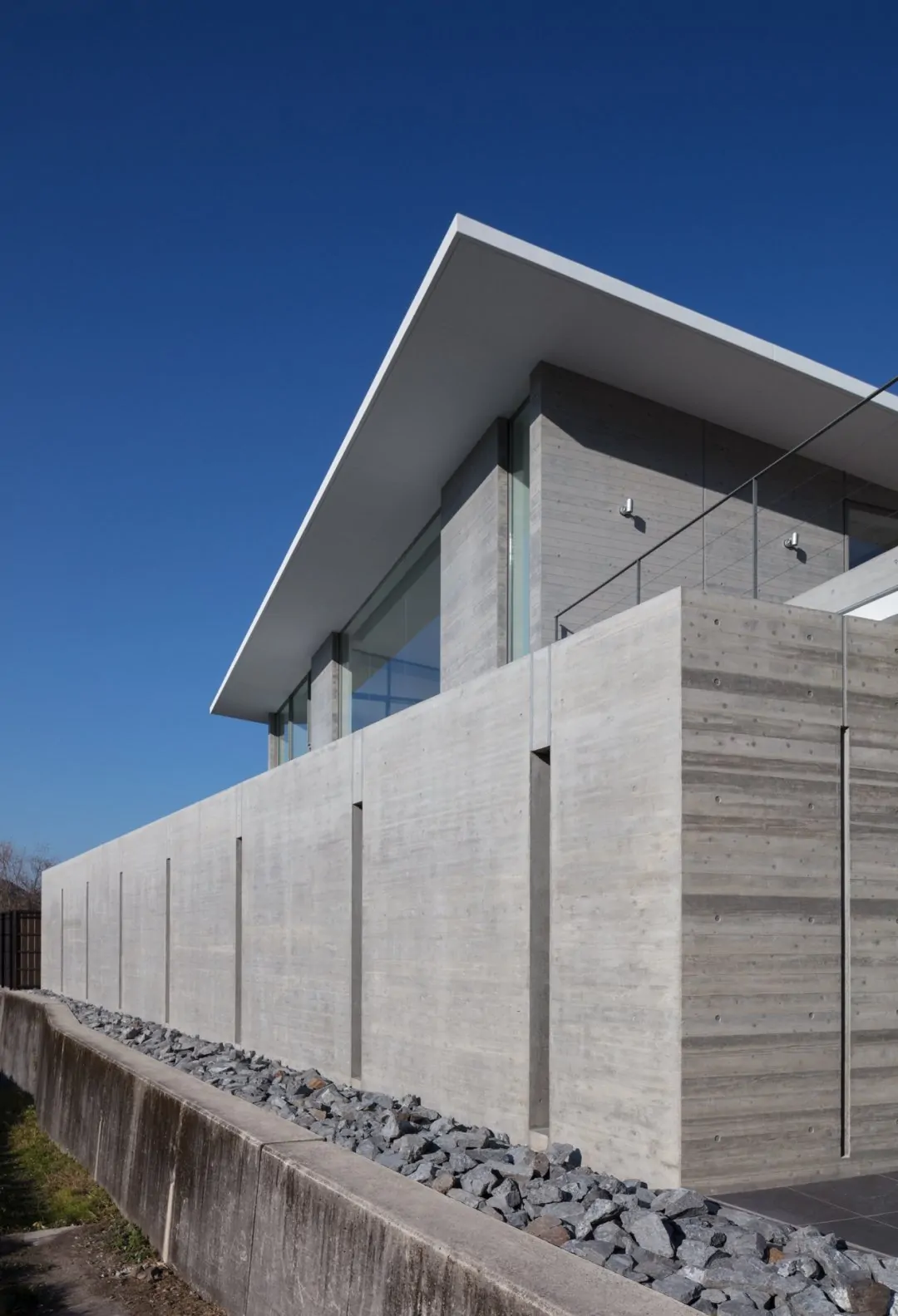 建築を構成する要素としては、中間領域をつくる壁と、屋根版から壁に切り替わる「殻」が主要な要素です。その部分は白く塗装されていて、光触媒効果を持った「OPTIMUS」という塗料を使用しているため、防汚性が高く空気の浄化作用もあります。「殻」を支える要素として打ち放しの壁があり、この地域で取れた杉を用いた型枠によって打設しました。杉は表面にうづくり加工が施されたもので、地域性のある素材によって作られた印象的な要素となっています。