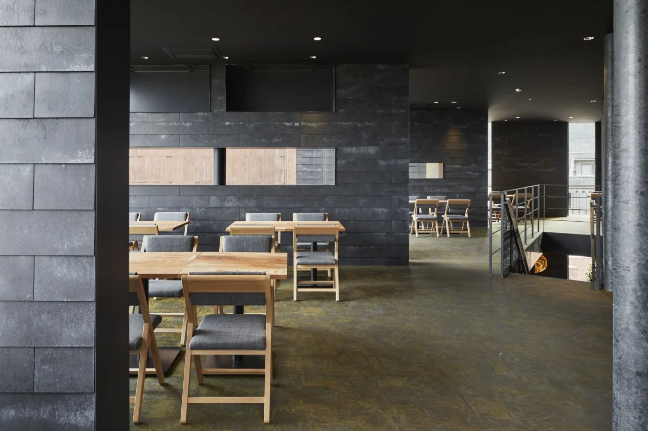 建物は2棟からなり、ロビーなどのパブリックな機能と客室のある本棟と、レストラン棟で構成されています。本棟は新築であり、レストラン棟は既存の建築物を利用した再生建築となっています。