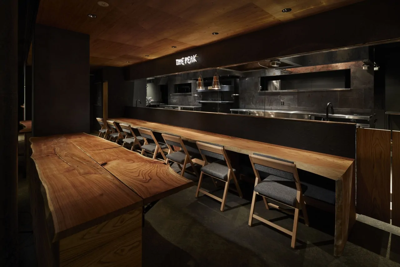 レストランは、石窯調理によるグリル系メニューが主体となっており、地域の食材の風味や特徴を活かした料理が主体となります。空間も料理のコンセプトと饗応するよう、厨房まわりは銅板、九州産牡蠣殻を原料とした藁スサ入り貝灰しっくいなどナチュラルな素材を用いて構成しています。手に触れる木部はすべて九州産センダン材。ケヤキに似て、それよりもう少しやさしい質感で、「早生樹」として知られ、広葉樹なのにスギやヒノキと同程度の期間で出荷できる為、今後林業の主役のひとつになる可能性のある樹種です。
