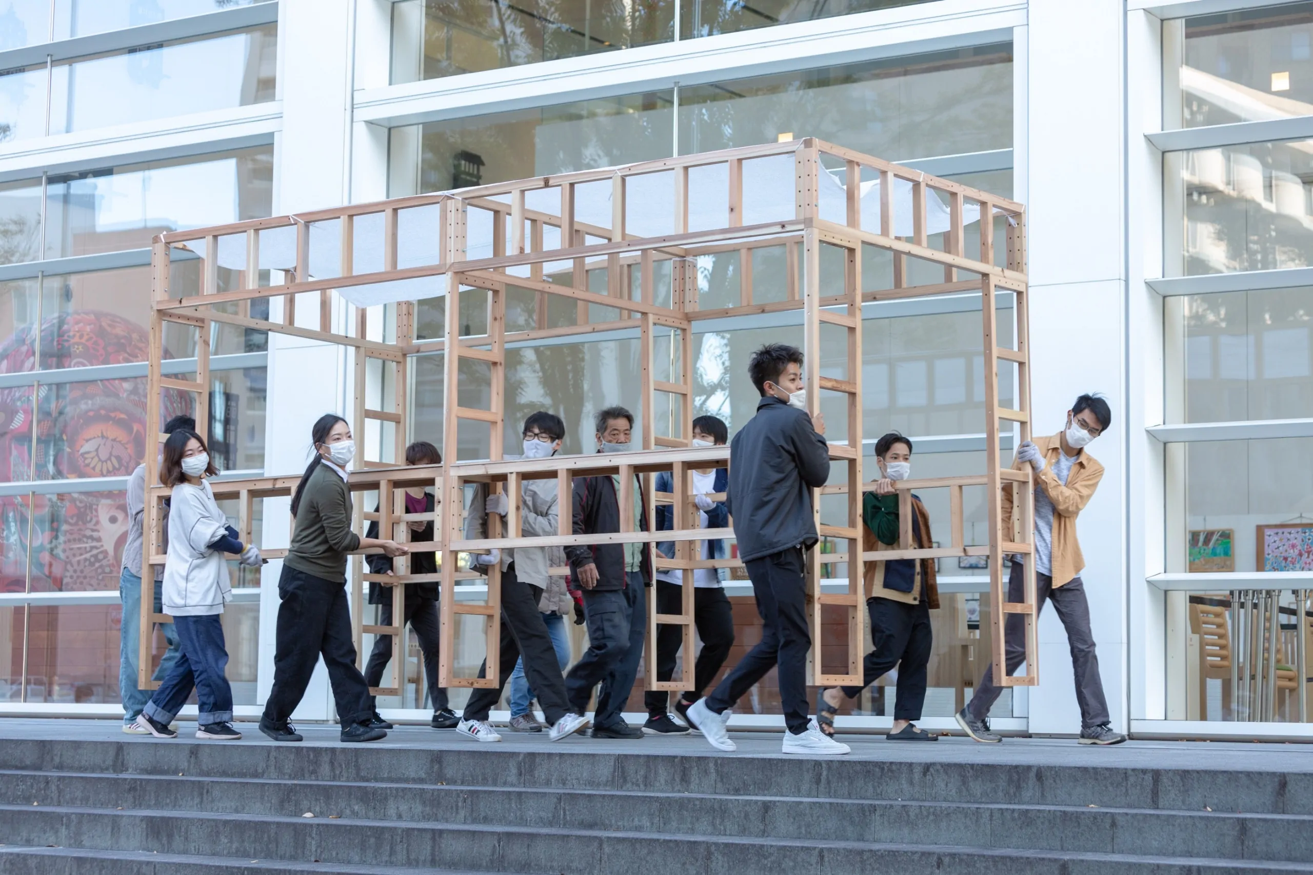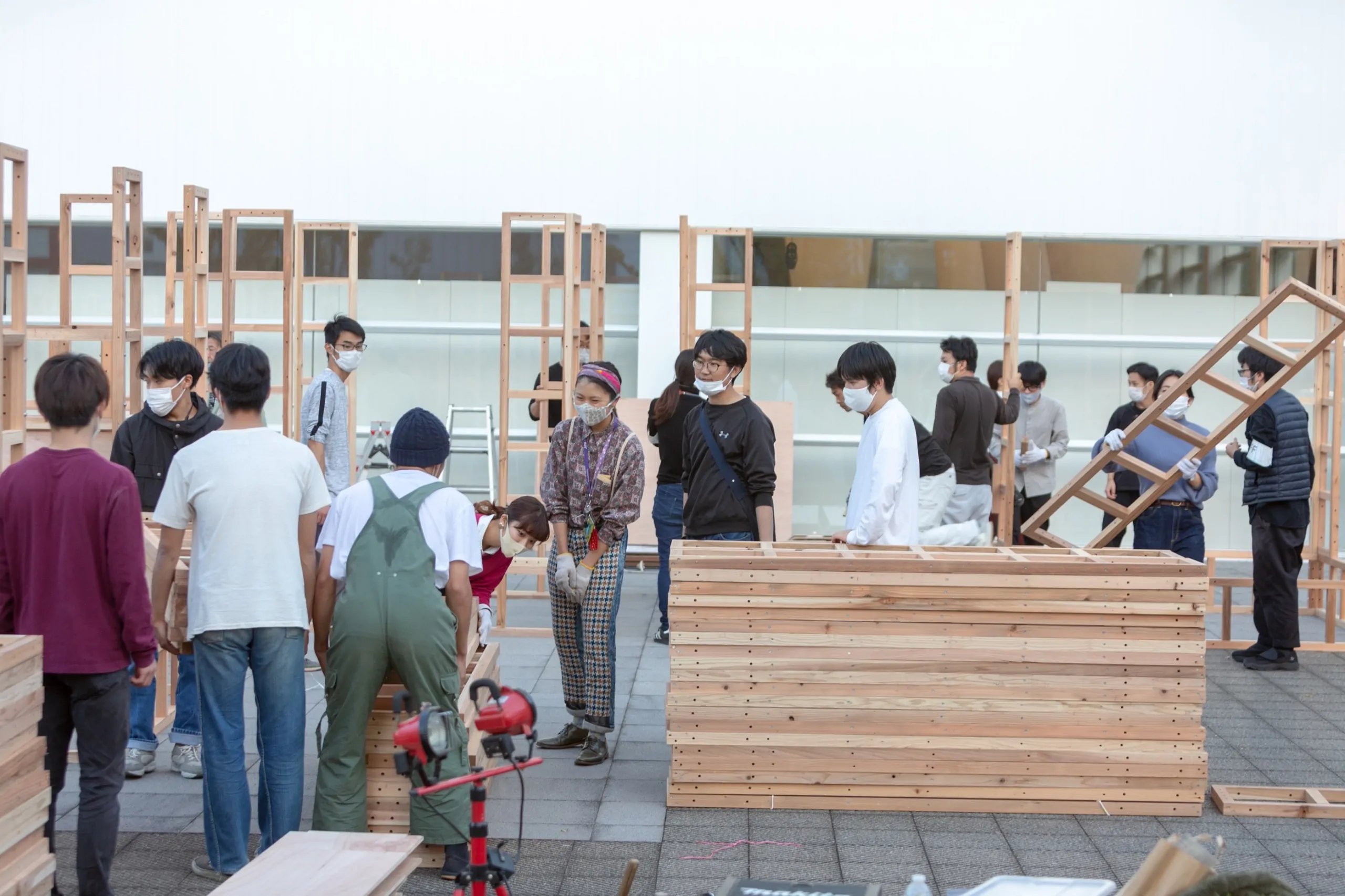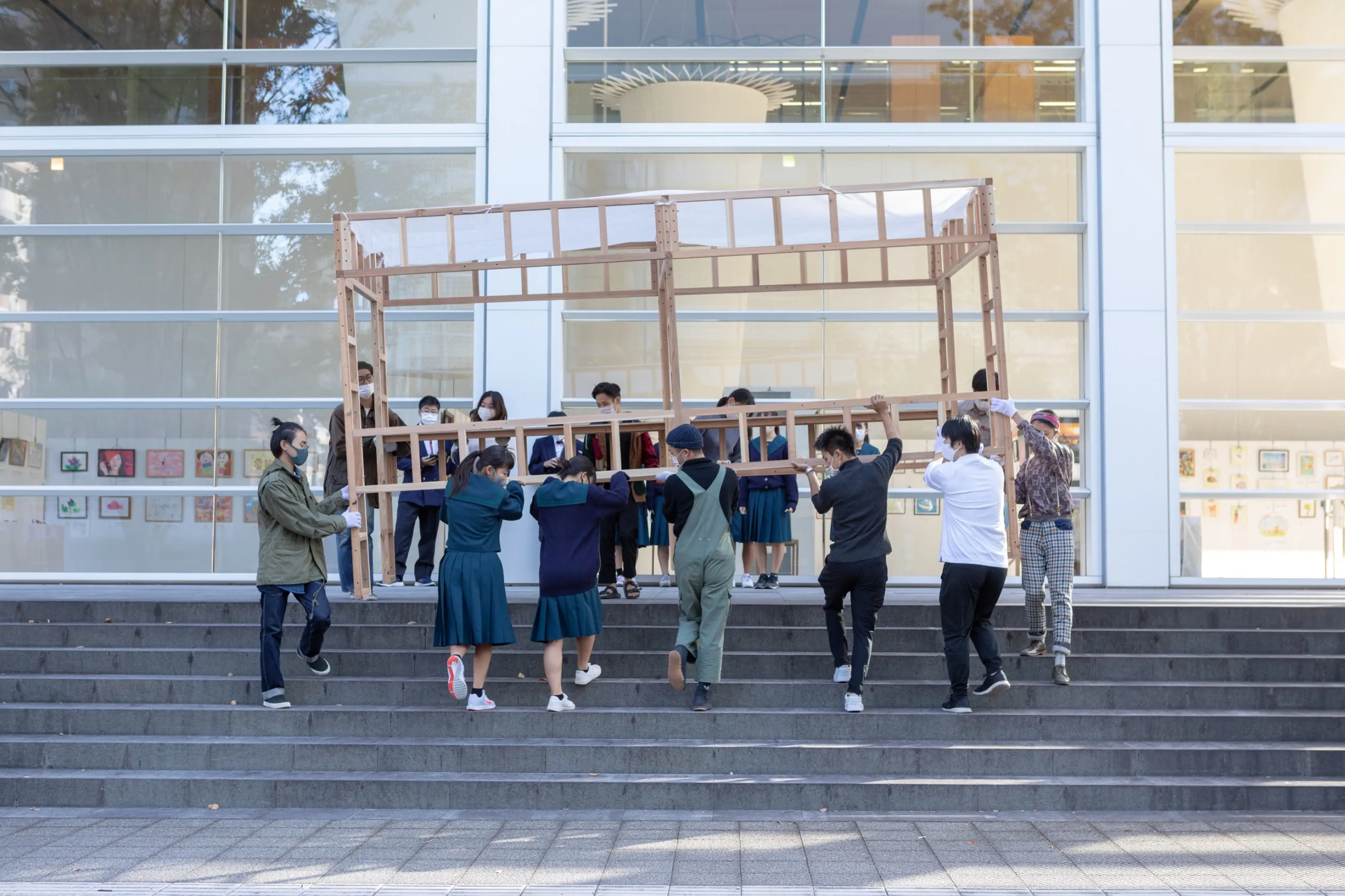 大分県立美術館開館5周年記念事業の一環並びに坂茂建築展の関連事業として実施された「カドウ建築の宴in OPAM」は、OPAMを設計した建築家坂 茂氏の活動につながる、建築や都市空間の社会的な意義に着目したものであり、来館者がよりOPAM内外の空間を楽しく過ごすことにつながる機会になればと願い開催しました。※坂茂建築展は2020年5月11日〜7月5日に開催されました。