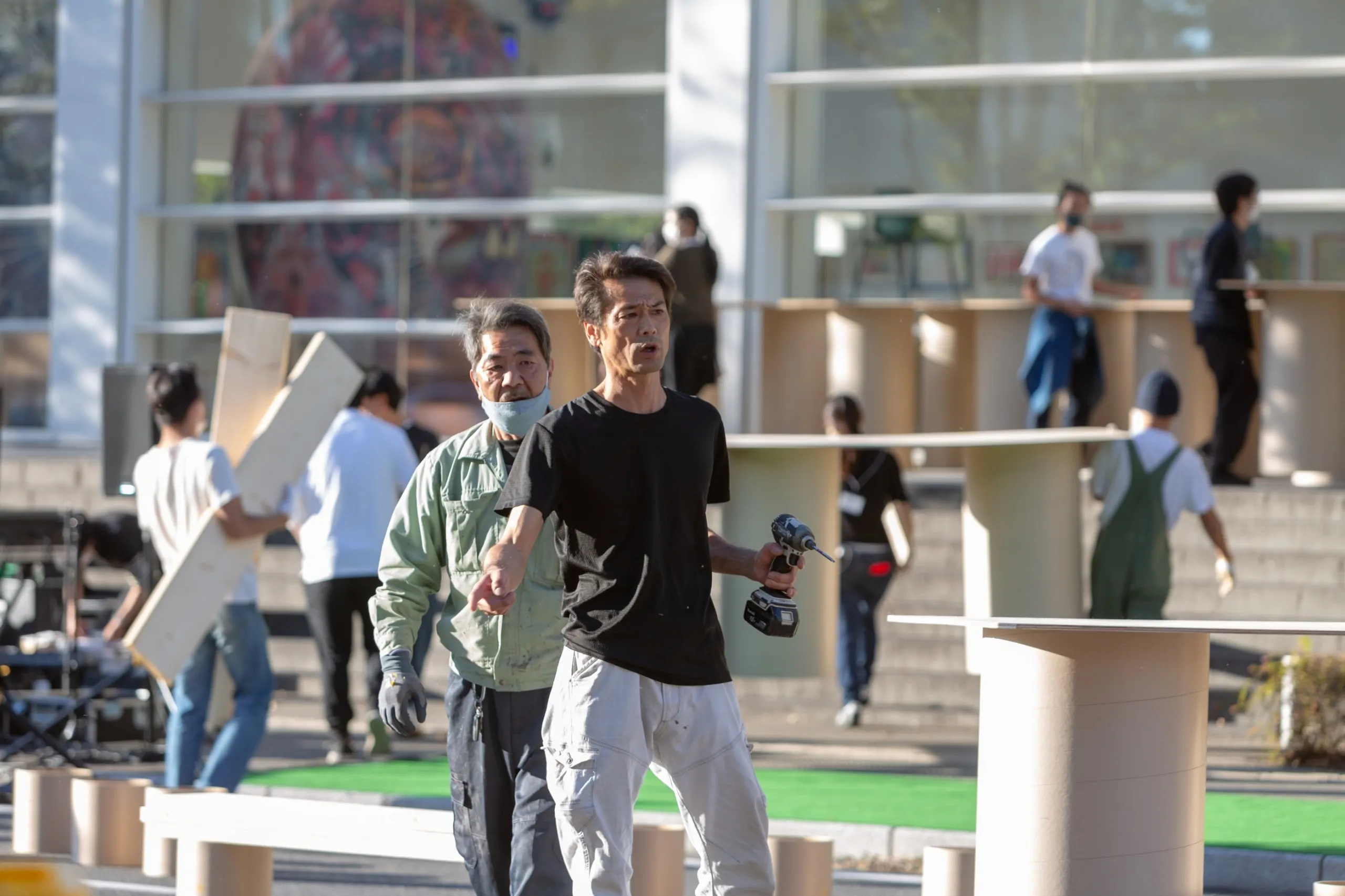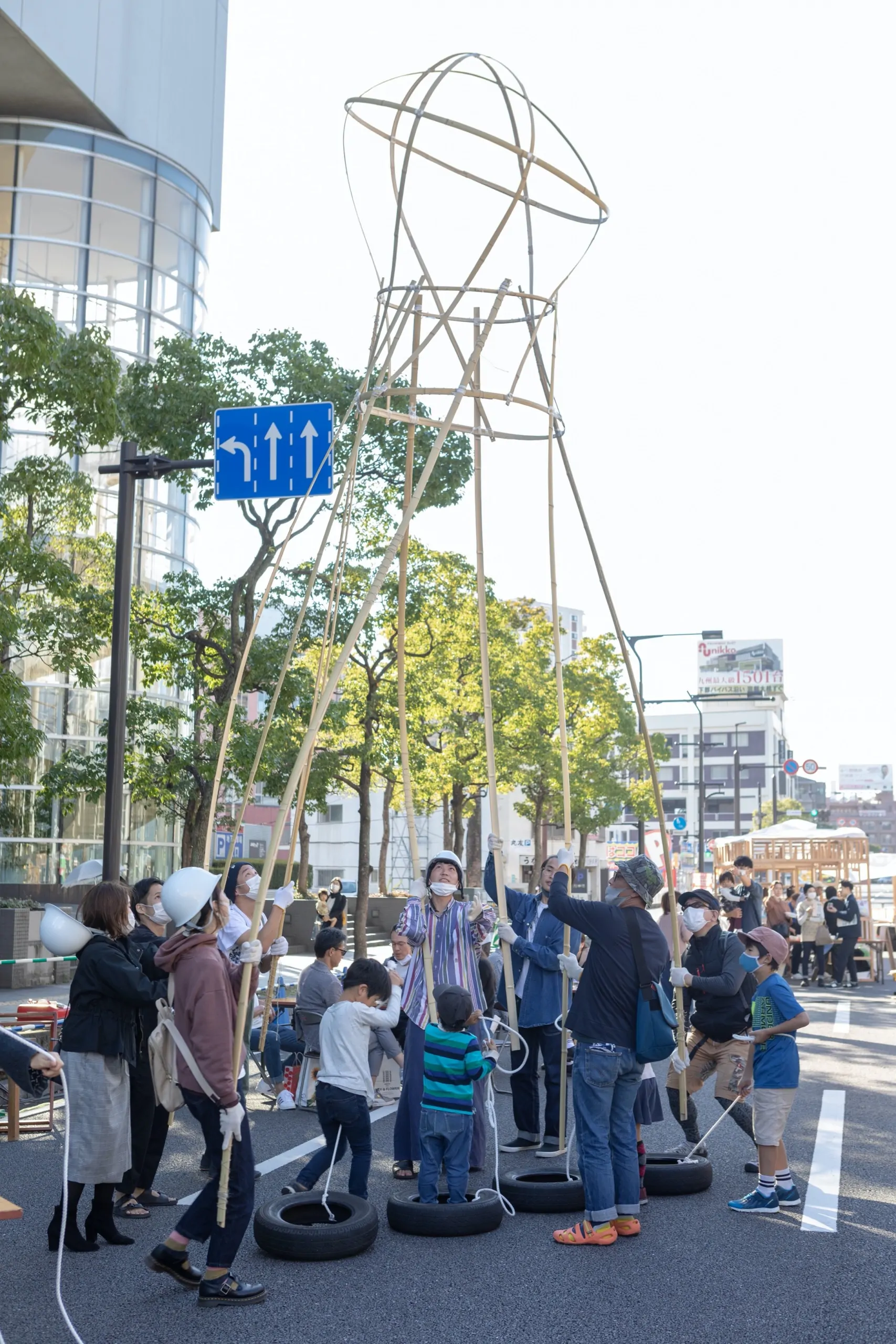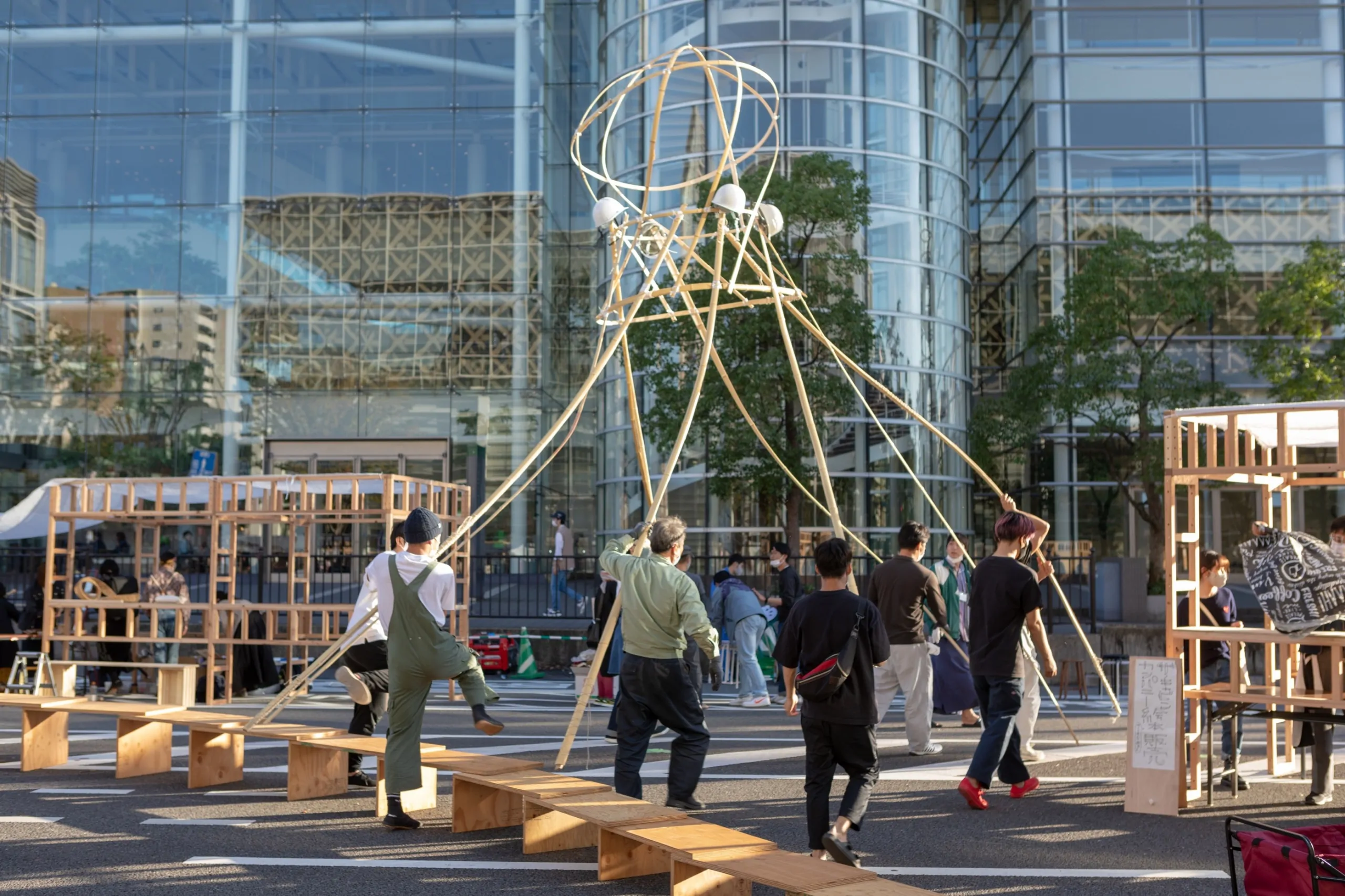 大分県立美術館開館5周年記念事業の一環並びに坂茂建築展の関連事業として実施された「カドウ建築の宴in OPAM」は、OPAMを設計した建築家坂 茂氏の活動につながる、建築や都市空間の社会的な意義に着目したものであり、来館者がよりOPAM内外の空間を楽しく過ごすことにつながる機会になればと願い開催しました。※坂茂建築展は2020年5月11日〜7月5日に開催されました。