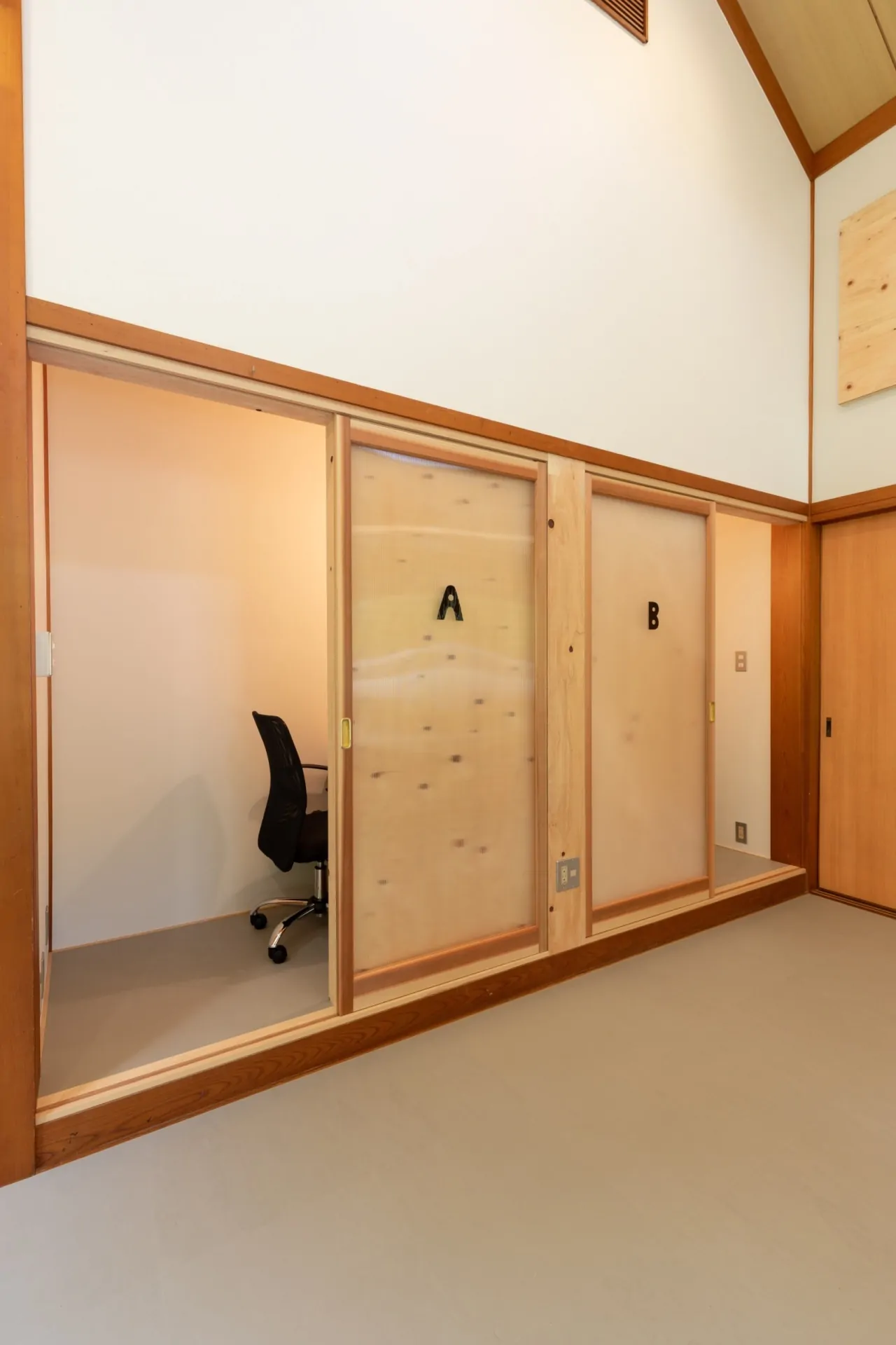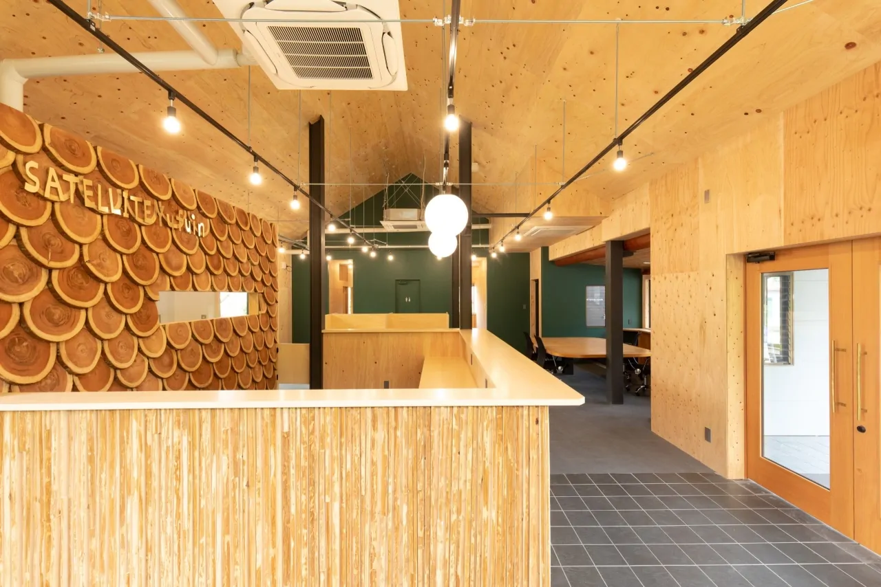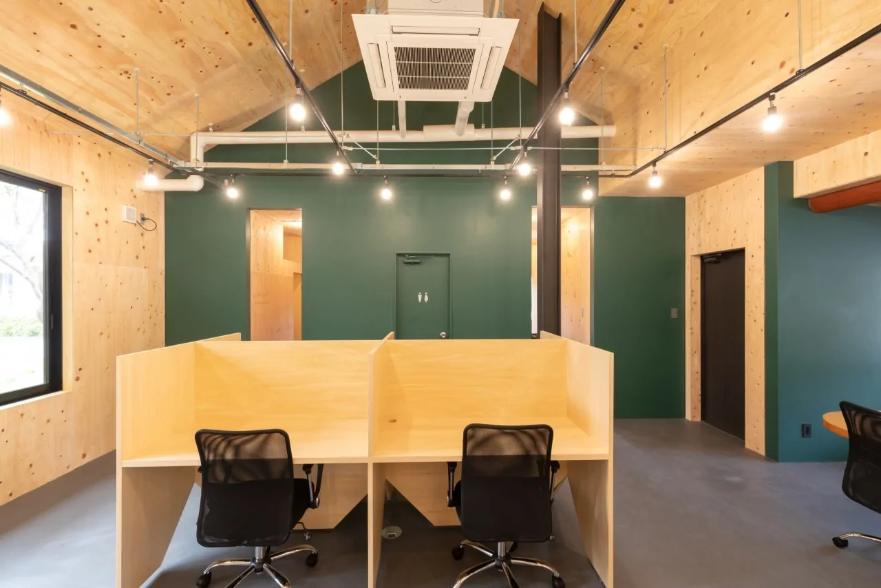 さらに、隣接する温泉施設「クアージュゆふいん」との連携を視野に入れ、ワークとウェルネスを横断する新しい過ごし方を想定。日常の延長にあるような気軽さと、外部との接続性を併せもつ場として設計した。敷地内には屋外イベントにも対応可能な庭空間を整備し、地域住民の集いの場としても機能する構成とした。季節のうつろいを映す庭の風景は、屋内にいてもふとした呼吸を促す。