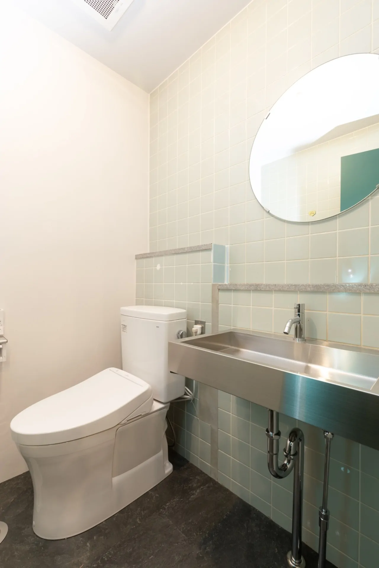 設計において重視したのは、湯布院の風景と暮らしに“働く”という行為を溶け込ませることである。まちに対して閉鎖的であった従前の構成を見直し、外構の整理と建具更新により、視線と動線の導入性を高めた。エントランス前の舗装とアプローチ動線の設計には、歩行者との関係性が自然に生まれるよう配慮している。