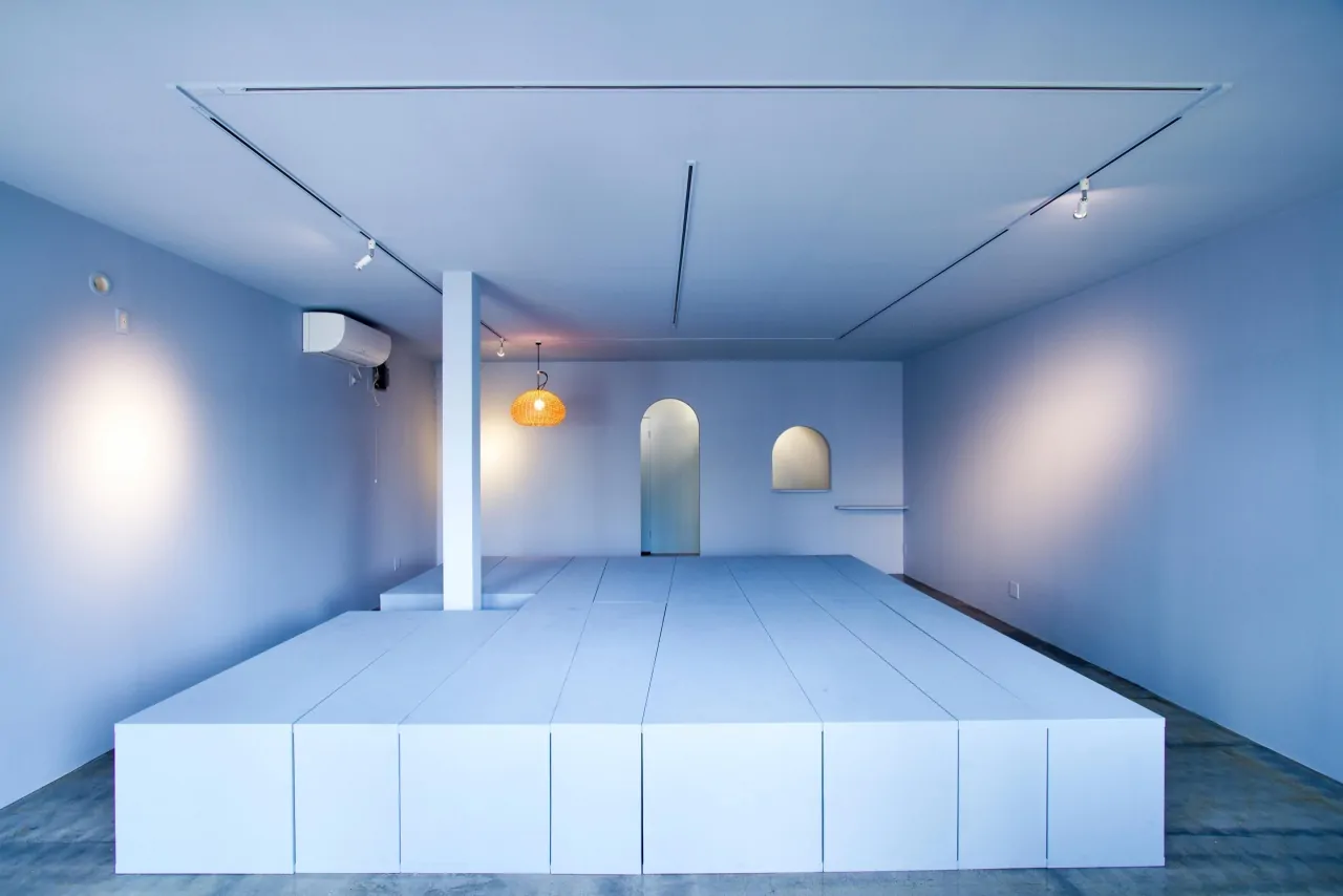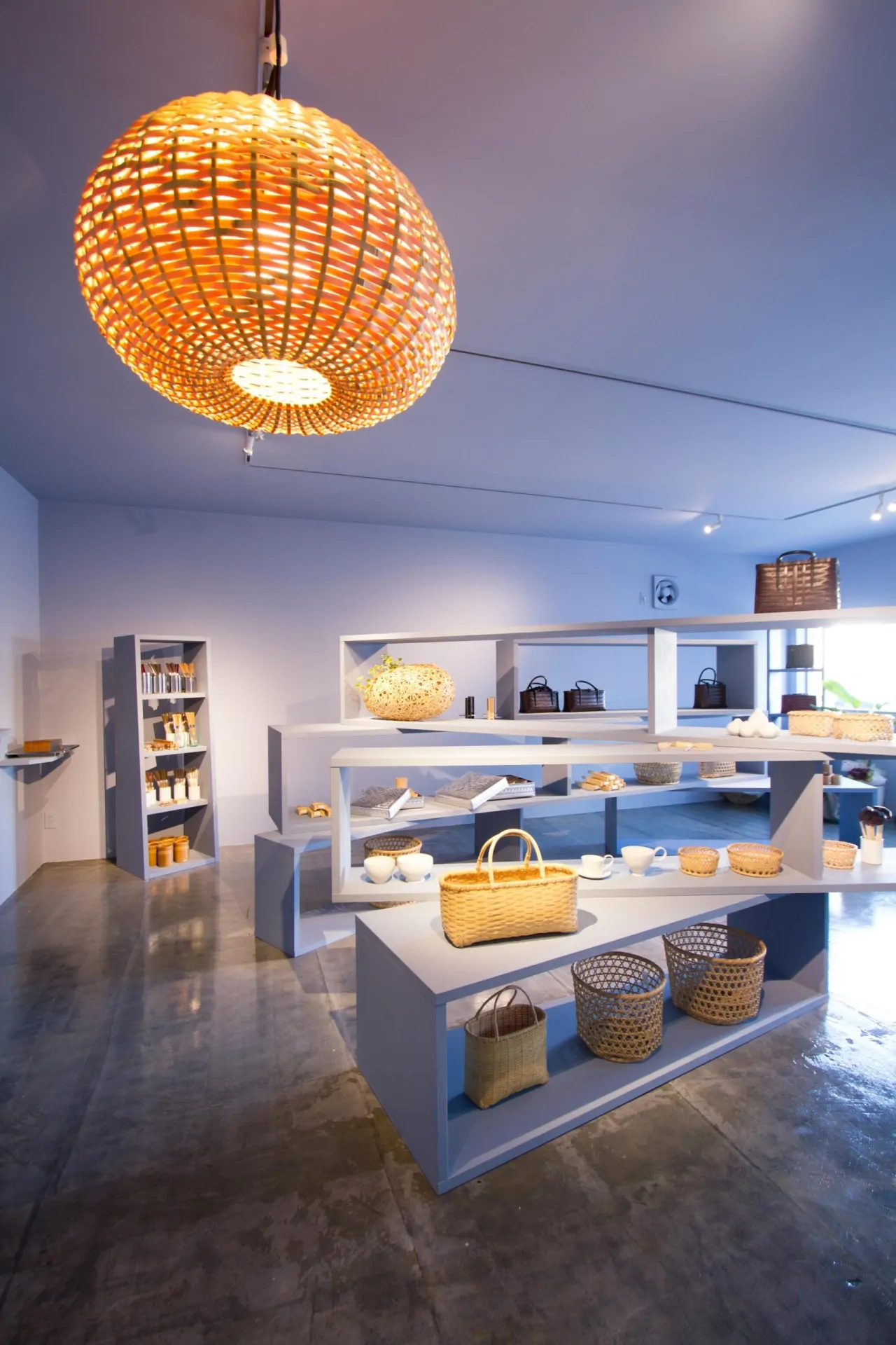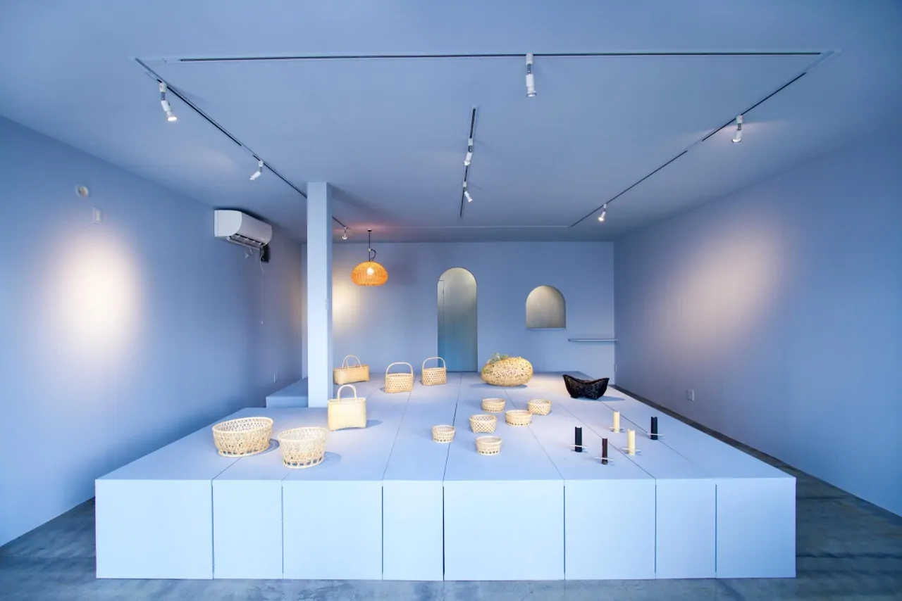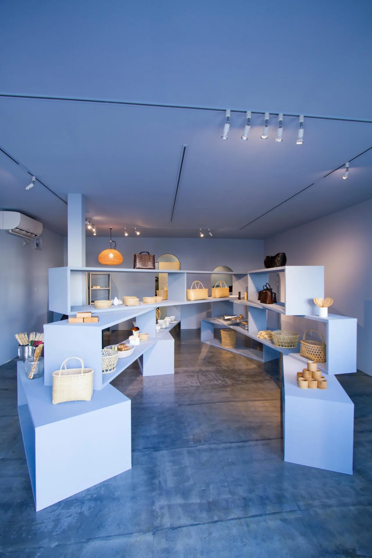 大分県別府市にある竹細工作家の作品を中心に扱うセレクトショップ。空間に直方体で中空の「ステージ」を設定。この直方体のステージは不揃いなストライプ状に分割できるようになっている。それぞれのパーツは壁や天井と同色で塗装されており、空間と什器に主従の関係は無い、等価な空間構成要素である。日常の販売や作家の企画展など、その時々の魅せ方に応じ変幻自在に空間を作り上げることができる。15坪に満たない元事務所が空間再生によって新たな道を進み始めた。