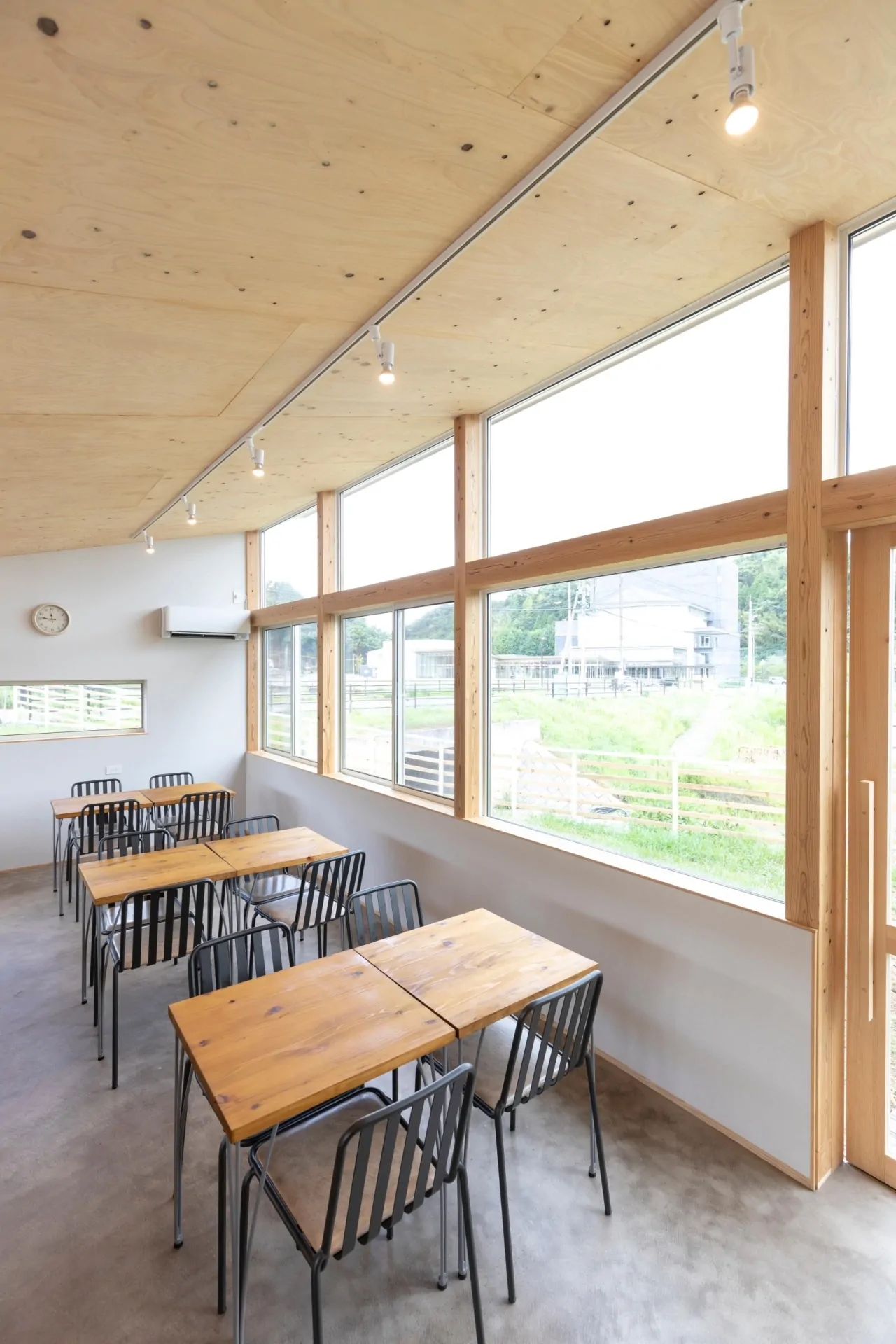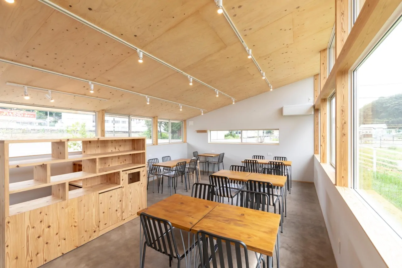 オーナー様は卵生産者さんで、卵を使ったスイーツやデカフェのコーヒーなど、お子さん連れや妊婦さんにもやさしいメニューを提供しています。また、計画当初よりお施主様の強い希望であった授乳室やおむつ交換台を完備しています。